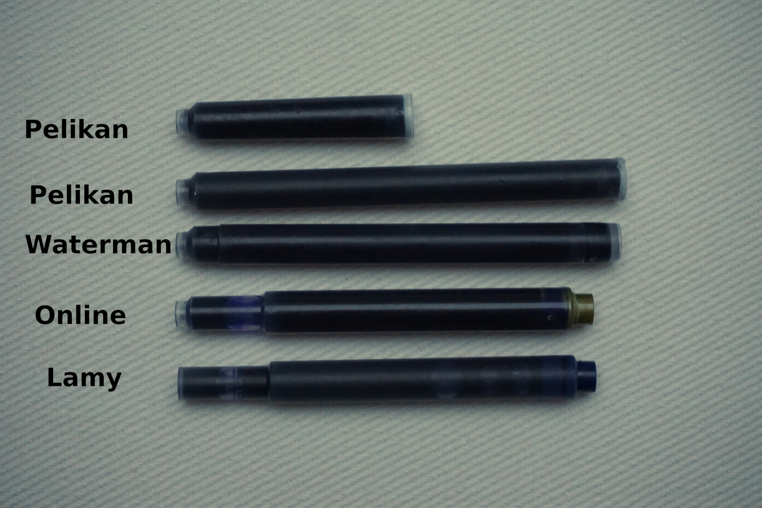Il confronto fotografico. Da notare la forma strana della Online nel lato "standard" per mantenere la compatibilita' con Lamy anche da quel lato.