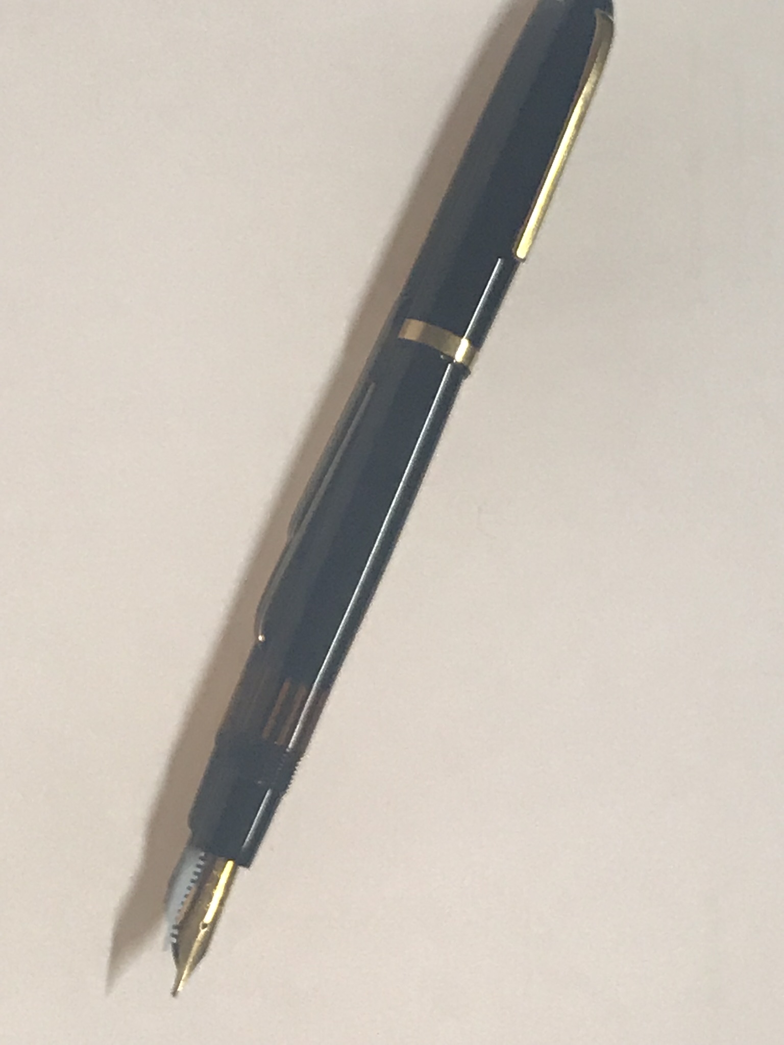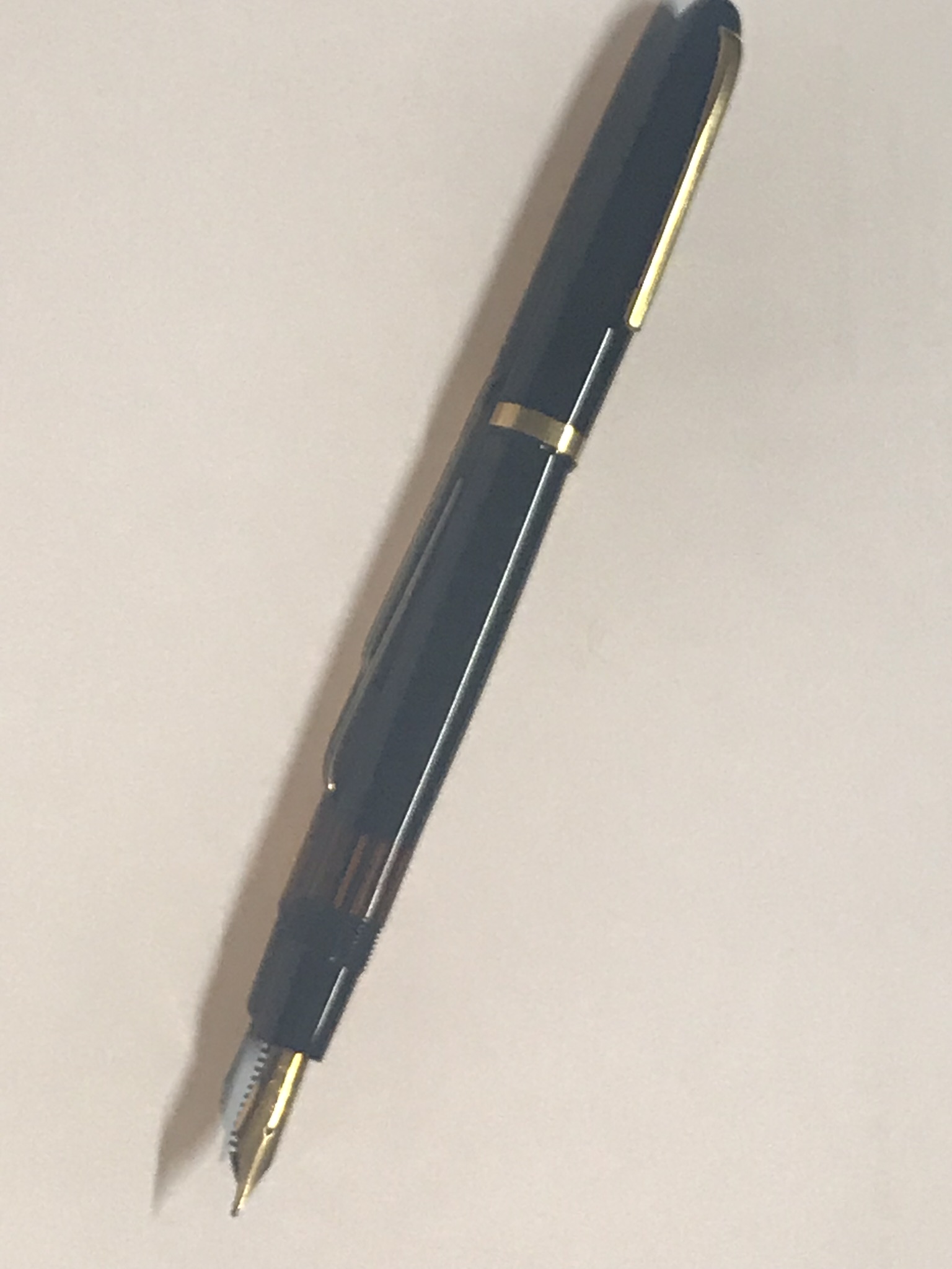 Ne ho una pure io verde/verde, era quella che usava il nonno, direi, nei primi anni 60. Ha un astuccio Pelikan con l’interno in raso bianco ora un po’ rovinato, e garanzia e istruzioni in Italiano, solito foglietto leggerissimo, con qualche macchia