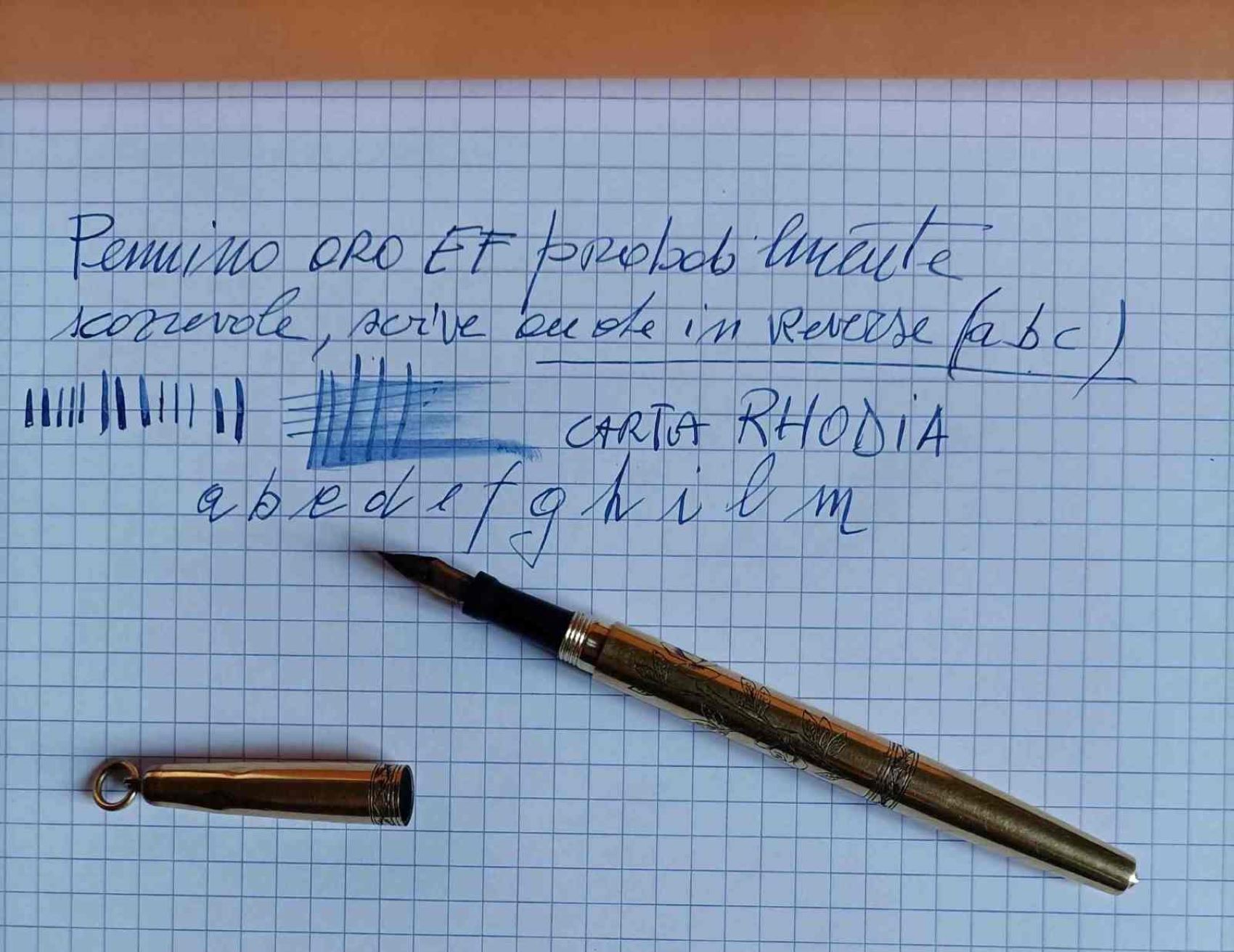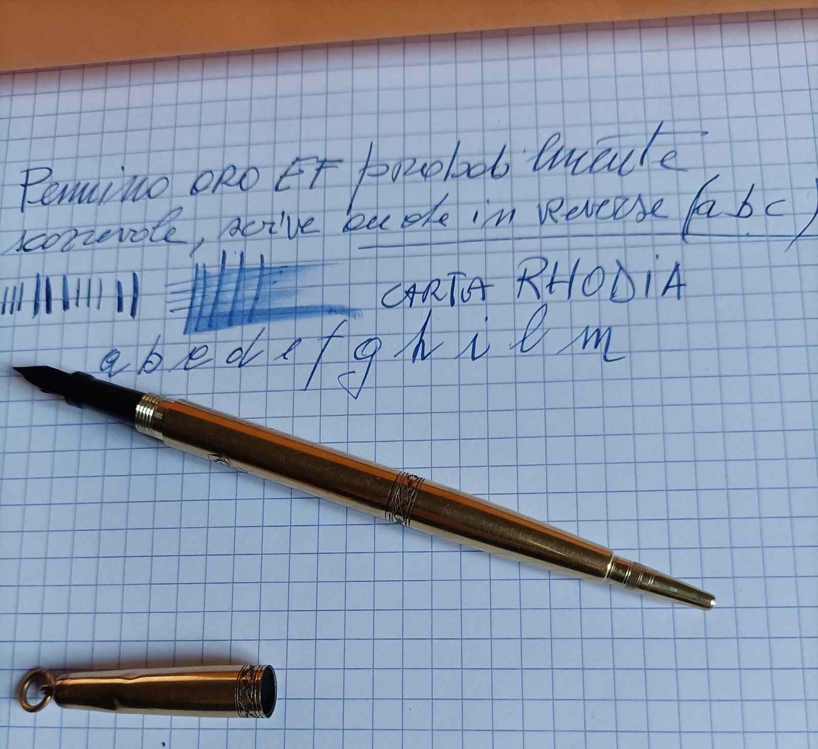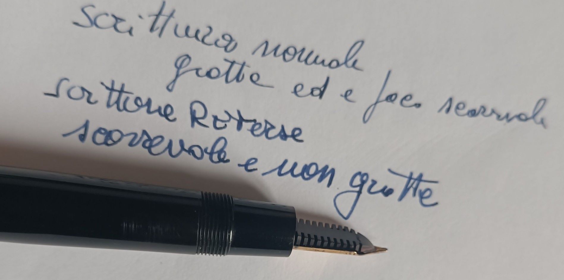 Ho una vecchia Omas con pennino 585 tronco. Il problema e' che se scrivo dalla parte normale, pennino con la punta in giu' ,la penna e' alquanto "stitica" e si sente un certo feedback del pennino sulla carta.Mentre se scrivo in reverse,il tratto e' piu scorrevole e l'inchiostro e' piu' abb...