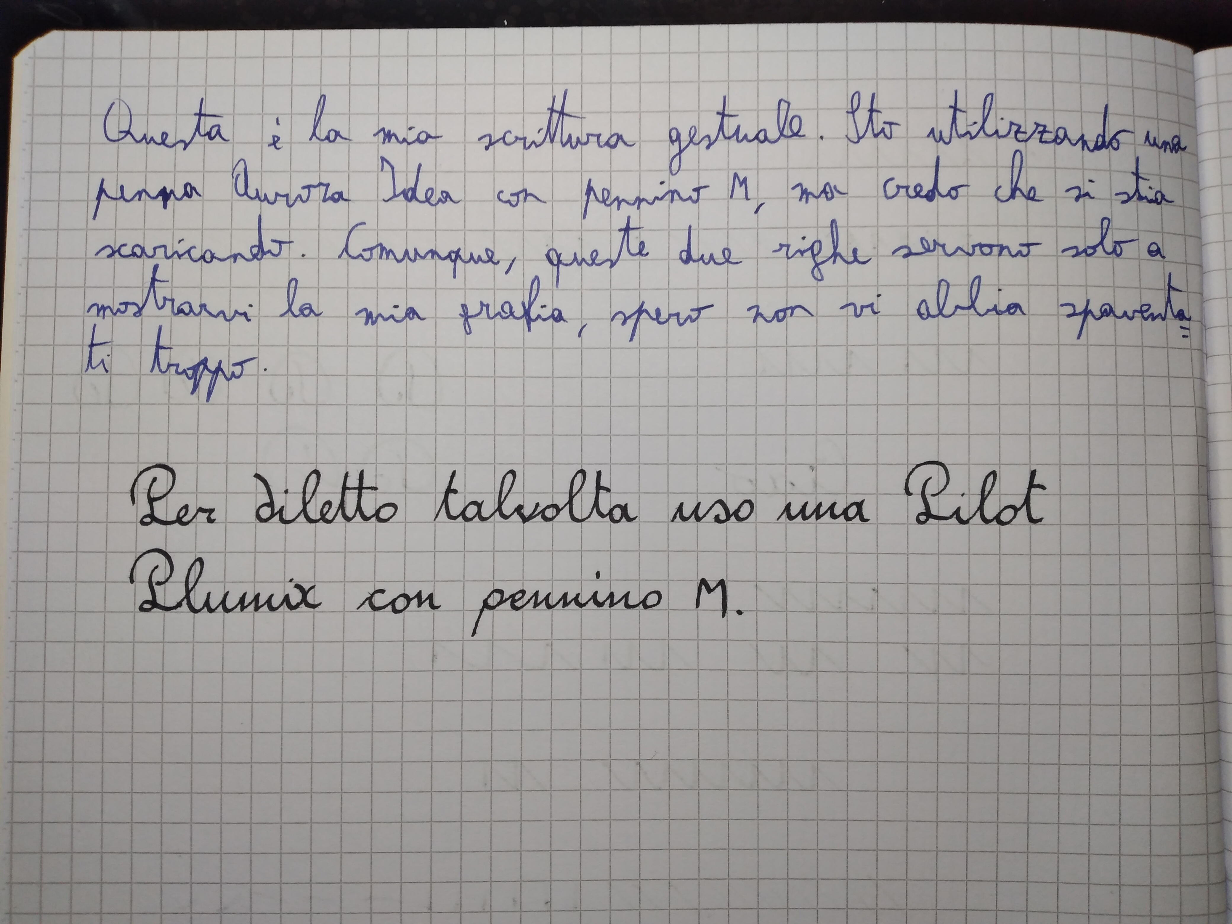 Salve a tutti! Non scrivo da un po' di tempo sul Forum (colpa della scuola :thumbdown: ), ma osservando la mia terribile grafia mi sono sorte due domande: - come posso migliorare la mia scrittura gestuale? Se può essere rilevante uso abitualmente una stilografica con pennino M, essedo quello con cui...