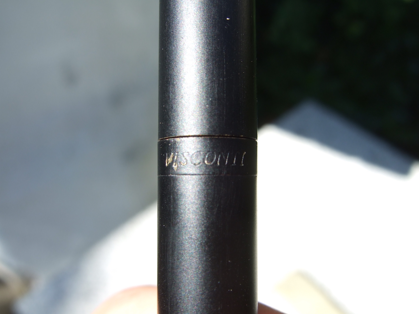 Sembrerebbe proprio di leggere VISCONTI. Potrebbe essere che qualcuno abbia fatto l'incisione su una penna anonima o magari è un falso cinese; oggi stanno un pò più attenti, ma per tanti anni in passato la contraffazione dei marchi famosi era la loro specialità. Può anche darsi... Però fai conto ch...