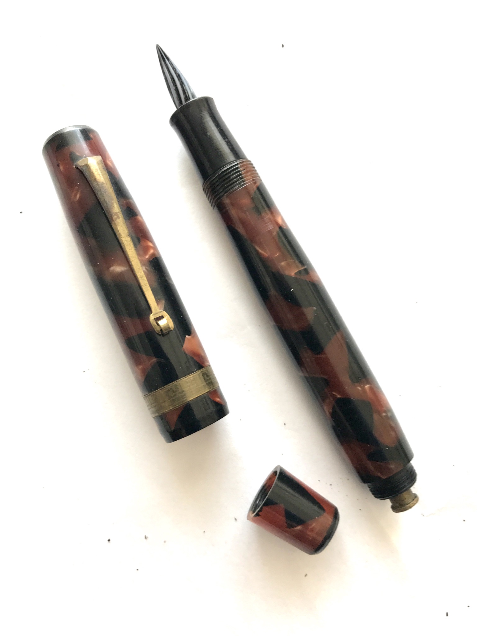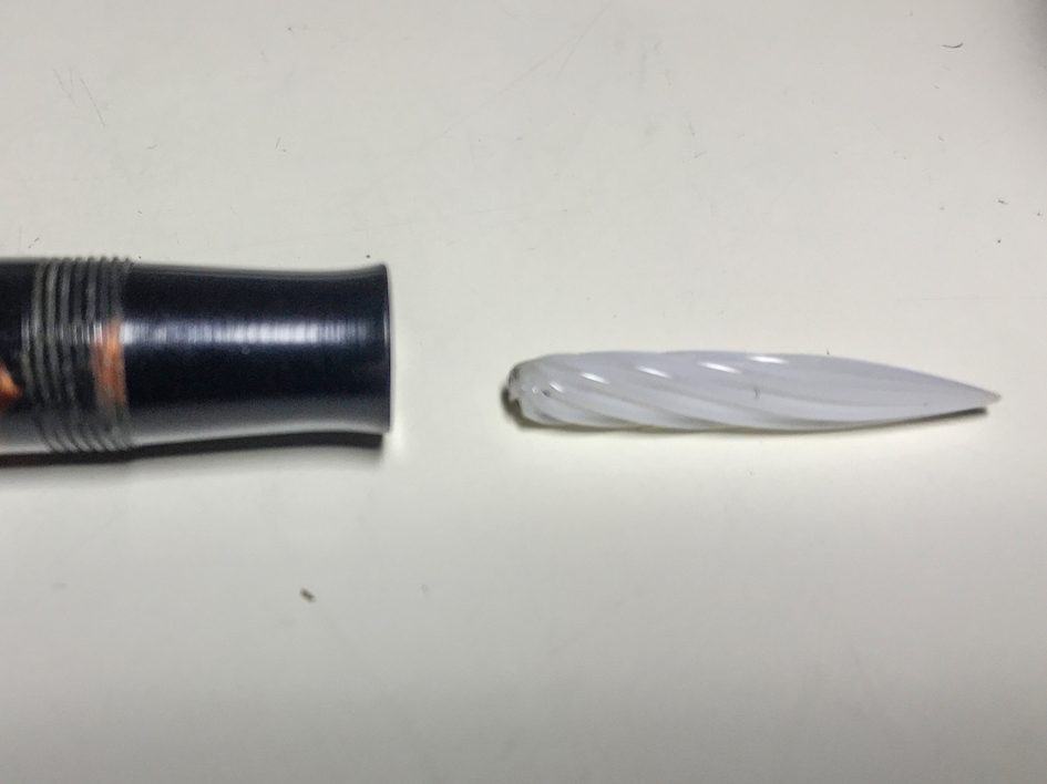 Credo proprio che fosse così. La sezione ha un foro rotondo in cui si poteva inserire il pennino in vetro (per le copi in carta carbone) o il pennino metallico corredato di alimentatore.
