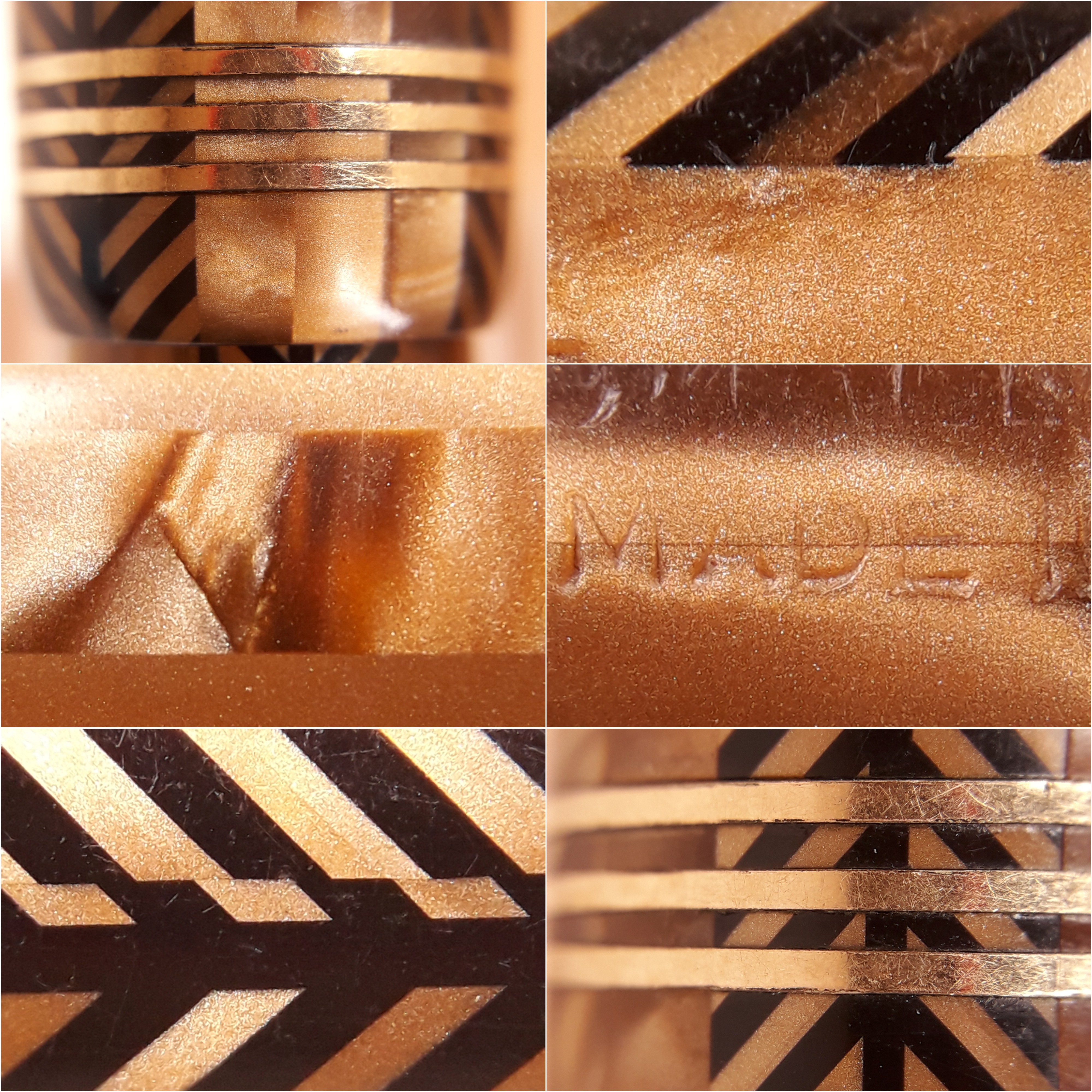 La celluloide è meravigliosa e la clip inconsueta la rende ancor più originale e parecchio attraente. Le nozioni storiche, culturali e sociali non fanno che aumentarne l'interesse e il bagaglio di esperienze che questa penna conserva e che conserverà ancora per molto tempo!