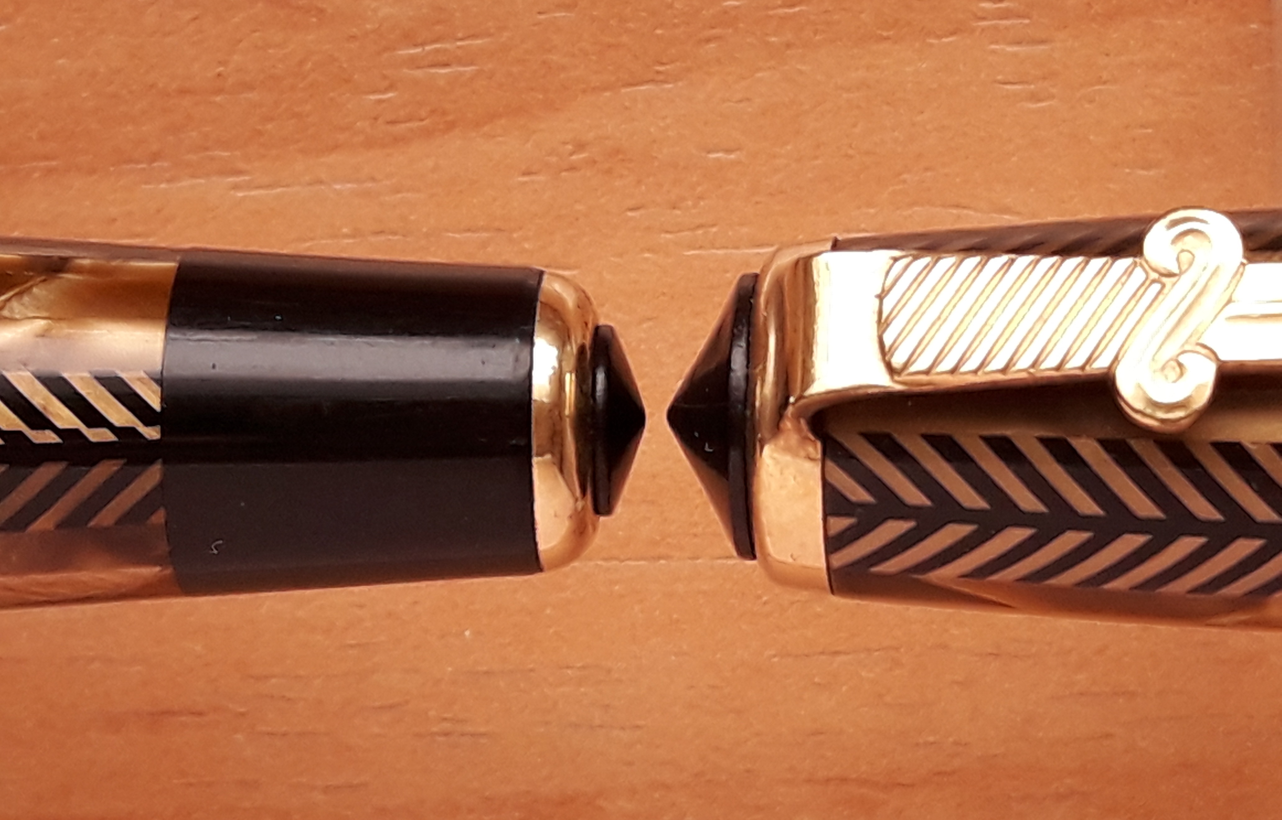 Con cappuccio calzato (con molta più attenzione del solito, però, considerata la delicatezza dell’inconsueta struttura “lamellare” della celluloide) la penna si rivela uno strumento perfettamente bilanciato, erede della sapiente e ben sperimentata ergonomia della linea Vacumatic da cui direttamente deriva.