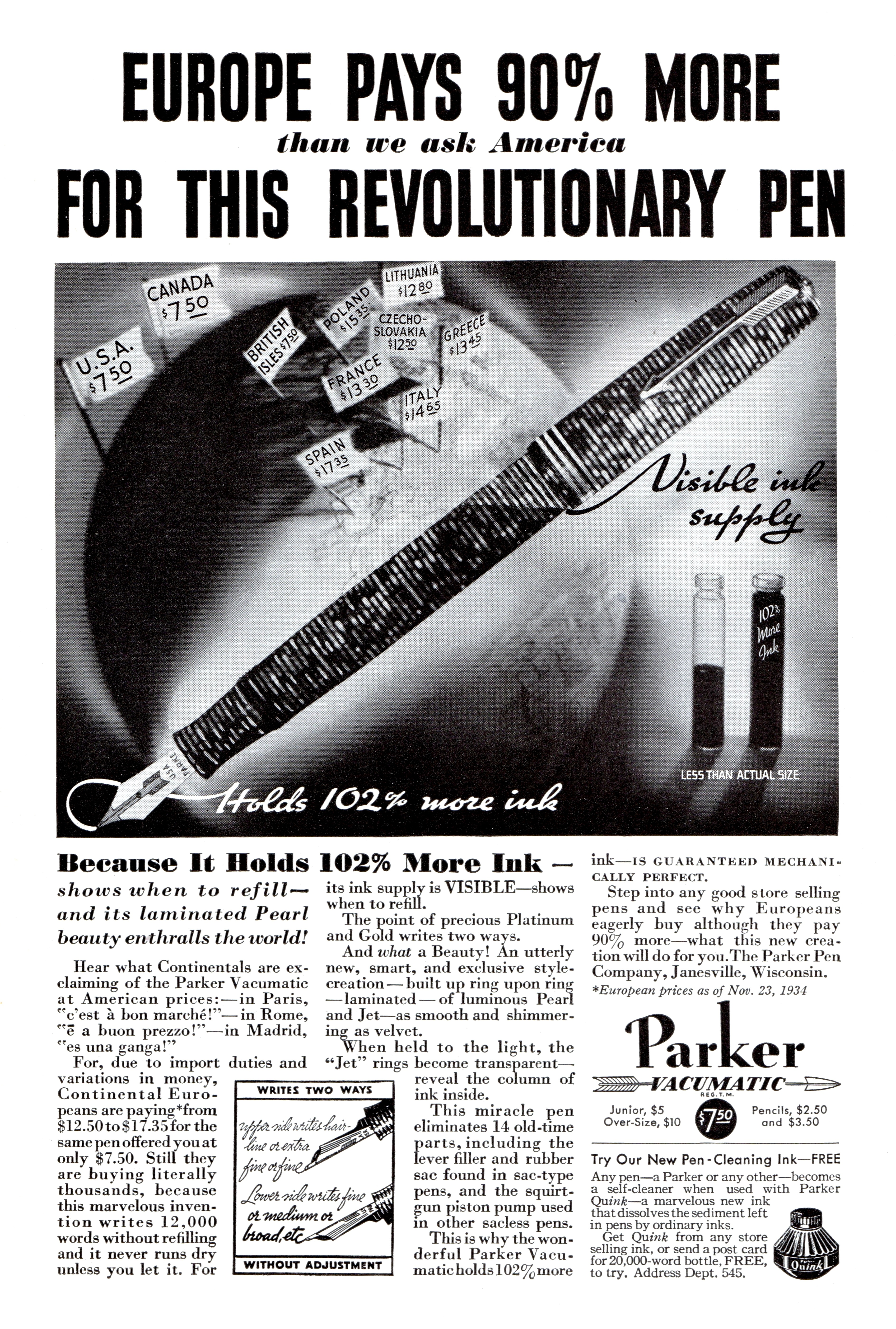 - l’aggiunta di un tondo con il dettaglio dei due sistemi di caricamento (che era già presente alle pag. 20 e 21 del “Parkergrams and Catalog” del Settembre 1936);