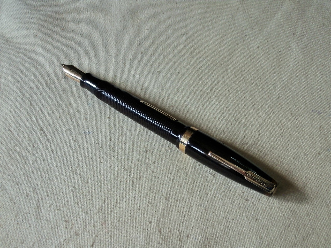 Misure: chiusa 12,8 cm - con cappuccio calzato 15,7 cm di cui 2,4 di pennino che riporta la scritta Waterman Hundred Year Pen RIGID ( e lo è di nome e di fatto EF)