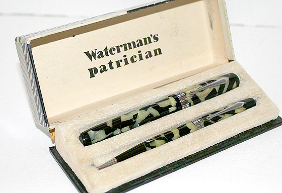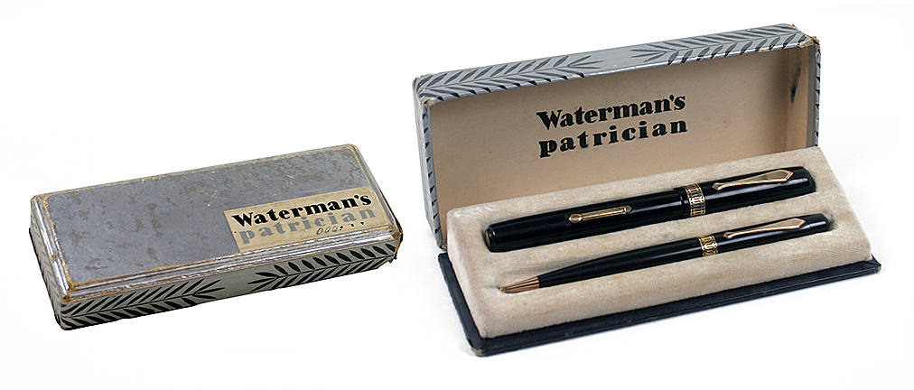 Facendo una rapida ricerca e se la mie memoria non mi inganna, diciamo che la vera scatola patrician è quella "loggata" che appare alla sua uscita sul mercato. Nel corso degli anni poi è probabile che Waterman abbia usato anche altri tipi di scatola (ricorrenze).