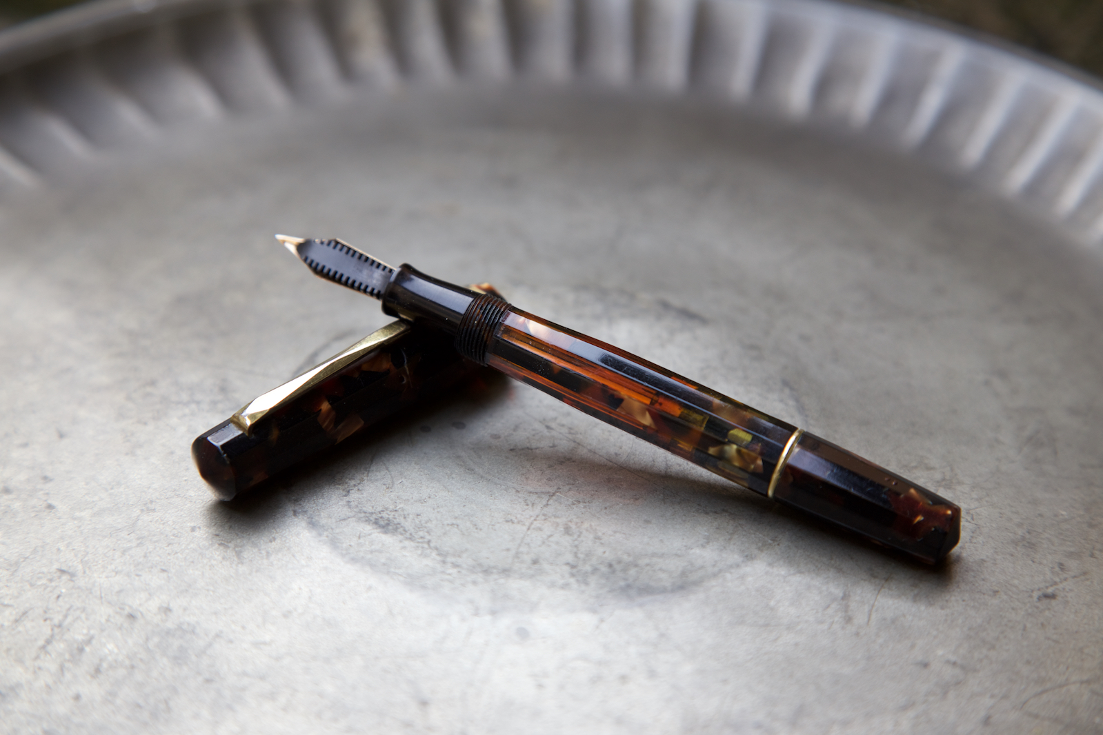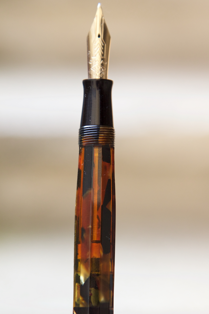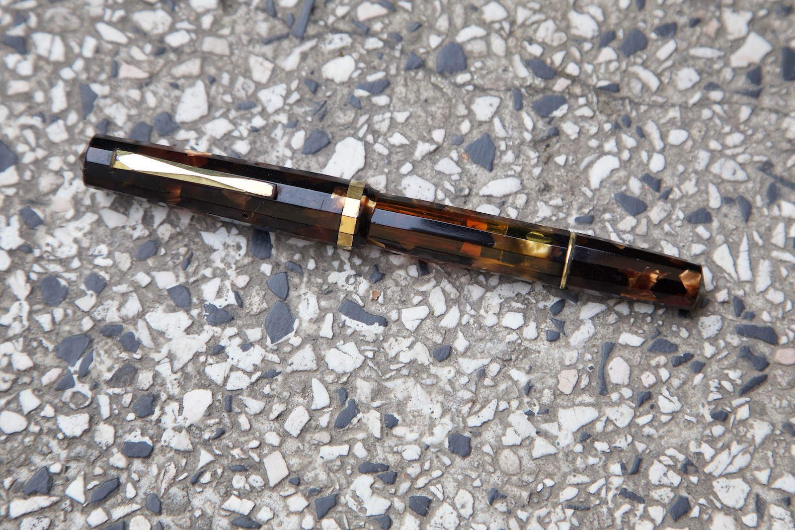 La penna è stata usata ma una volta ripulita le sue trasparenze e i colori della celluloide sono riesplosi, oosservandola alla luce si possono apprezzare l' alternanza delle faccette e i colori della celluloide "tartaruga". Le dimensioni