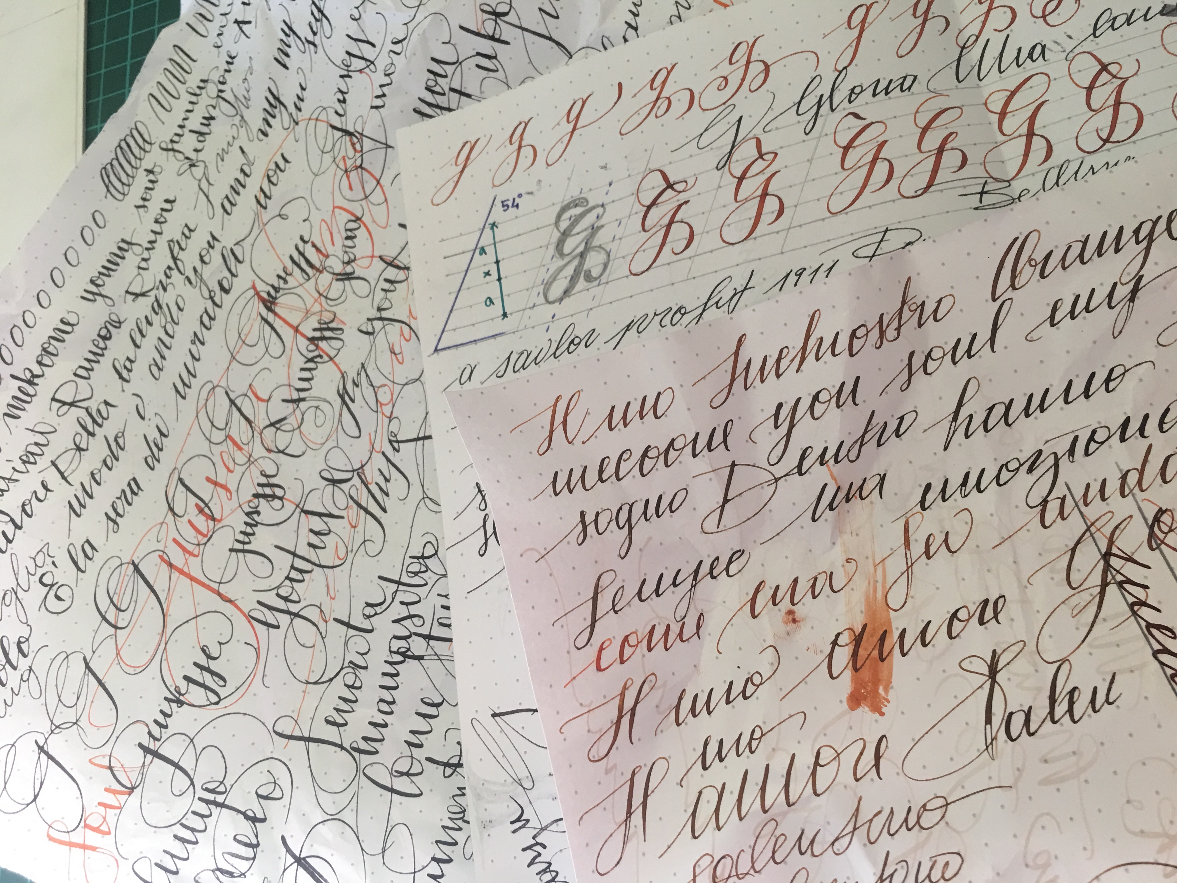 fogli recuperati dal cestino sono esercizi che la notte mi diverto a fare prima di coricarmi ahah tipo ninna nanna ...questa se non erro è la pilot falcon, con inchiostro mont blanc su carta rodia puntata