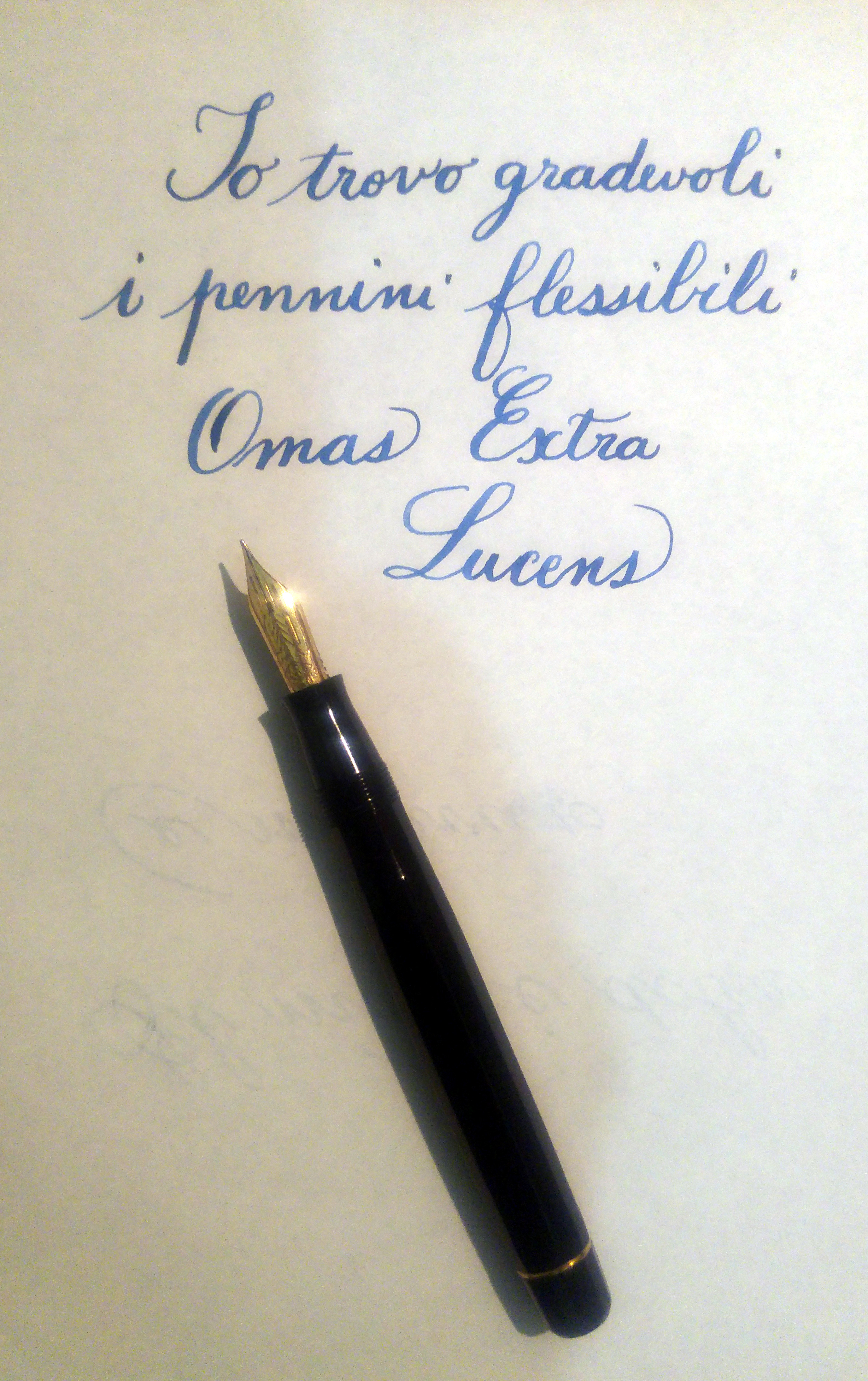 Io ti consiglierei anche una OMAS vintage con pennino Extra Lucens. Ci sono anche pennini OMAS Extra vintage flessibili, ma bisognerebbe provarli prima o chiedere al venditore, qualora acquistato online, una prova di scrittura.