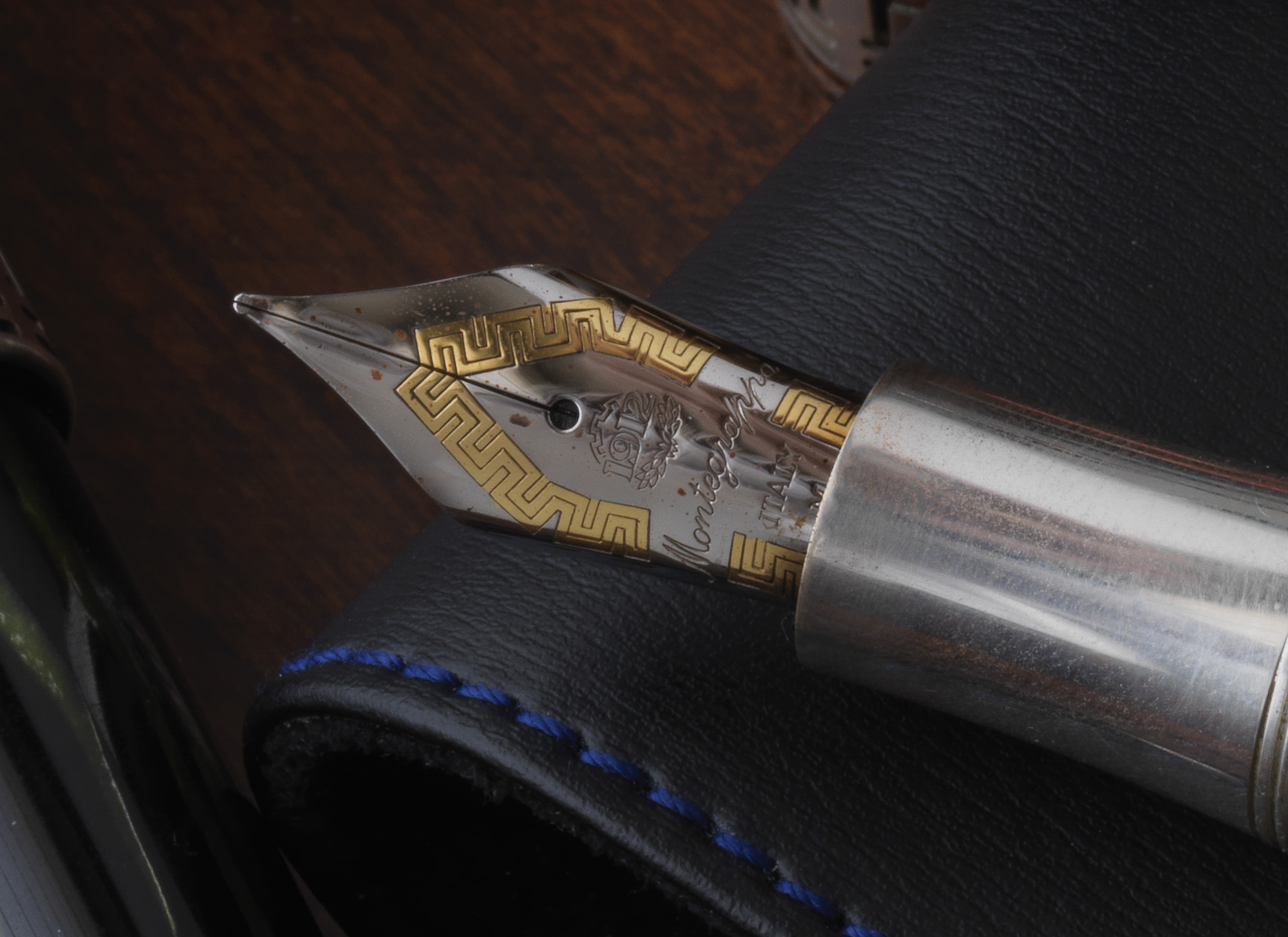 Approfitto della fotografia del bel pennino medio della mia Montegrappa extra 1930 in celluloide tartaruga per dirvi che il 9 gennaio sarò in visita alla Montegrappa, dove finalmente avrò occasione di conoscere di persona il gentilissimo Peter Zanesco, con il quale abbiamo mantenuto attraverso i mesi un continuo e amichevole scambio di lettere. Per l'occasione, questo pennino M sarà sostituto da un pennino STUB, come quello che monta l'altra mia Montegrappa Extra in celluloide nero bambù.