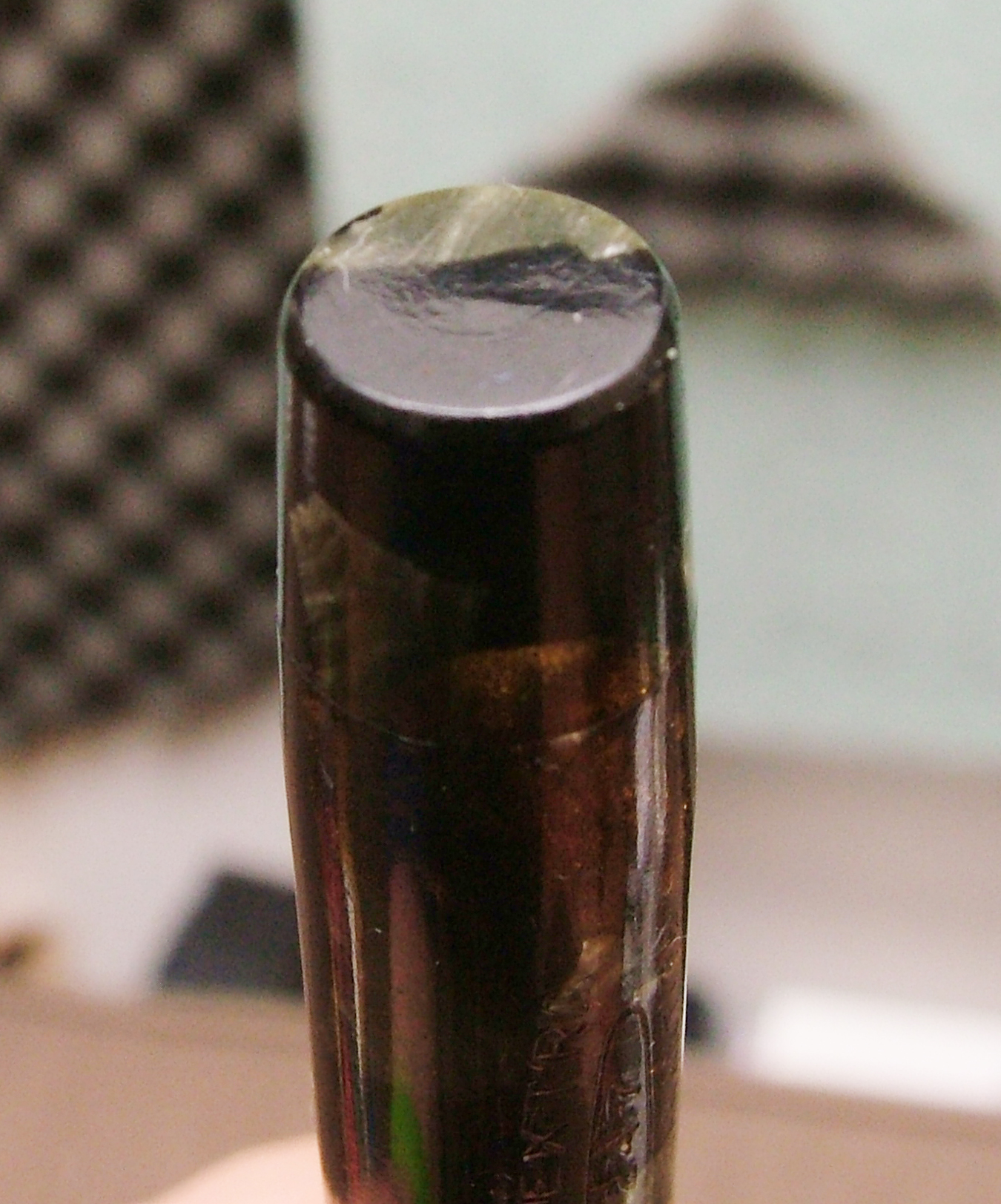 Il colore della celluloide è particolare, molto bello a mio giudizio, purtroppo il pennino è un Warranted, un po di pazienza e troverò l'originale, non comune ma neanche molto raro.