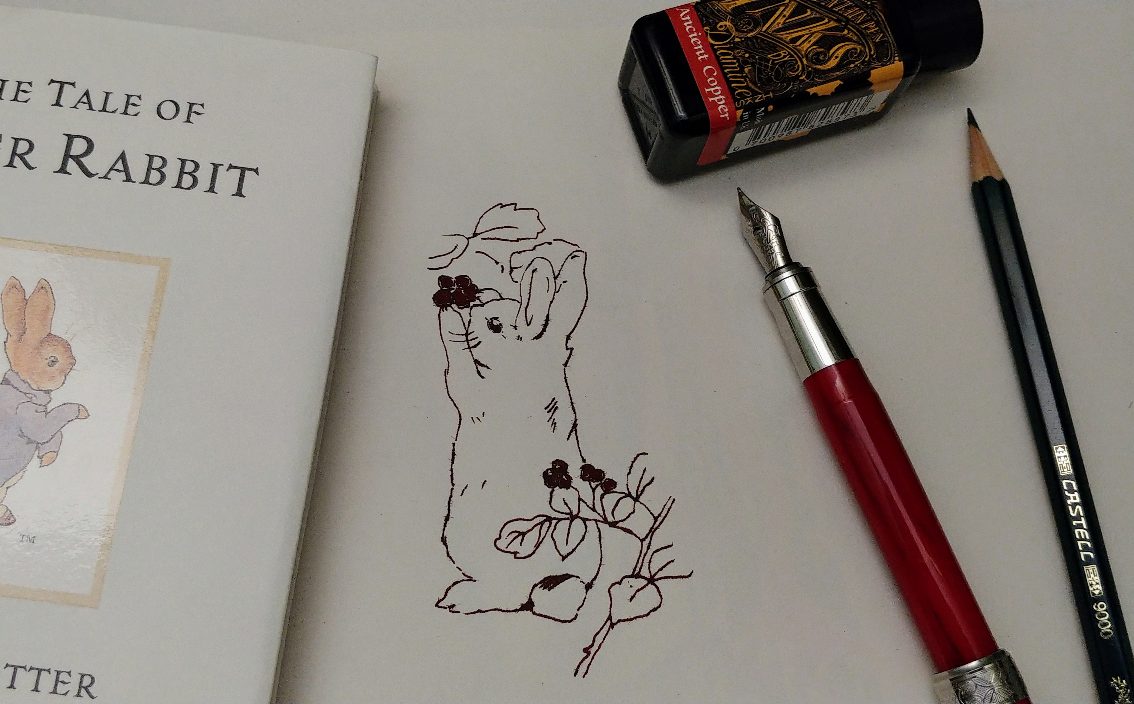 Ma, ho voluto comunque utilizzare pennino e inchiostro perché mi piace molto la sfumatura di colore che rivela il Diamine Ancient Copper su questa carta.