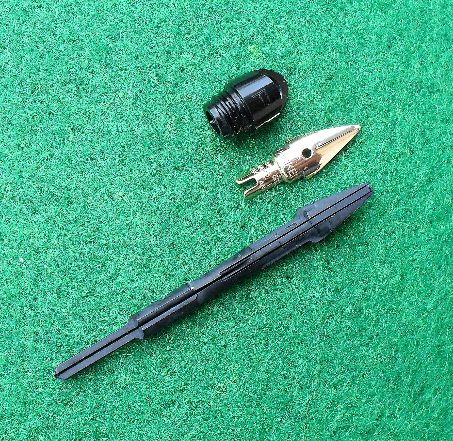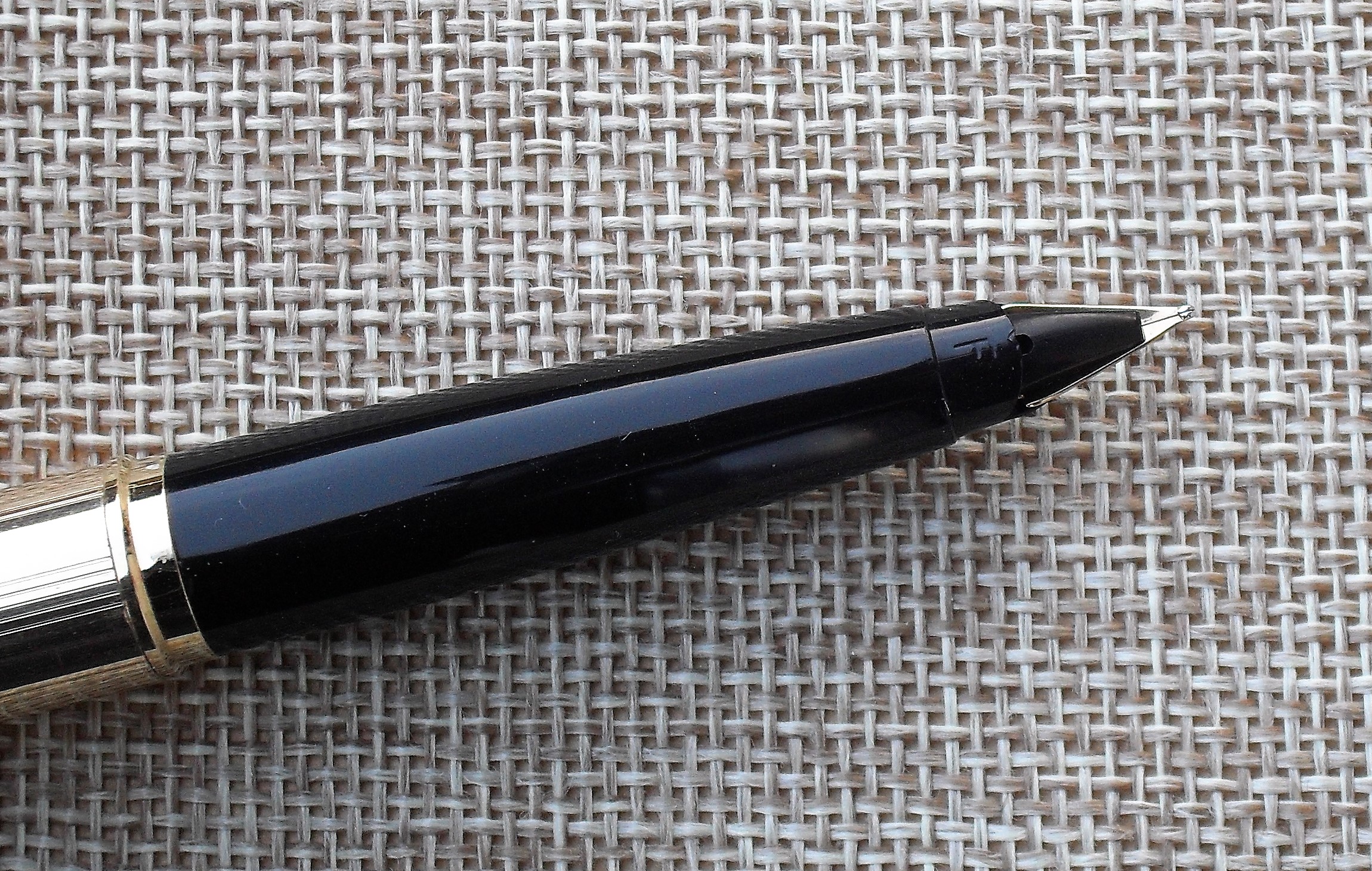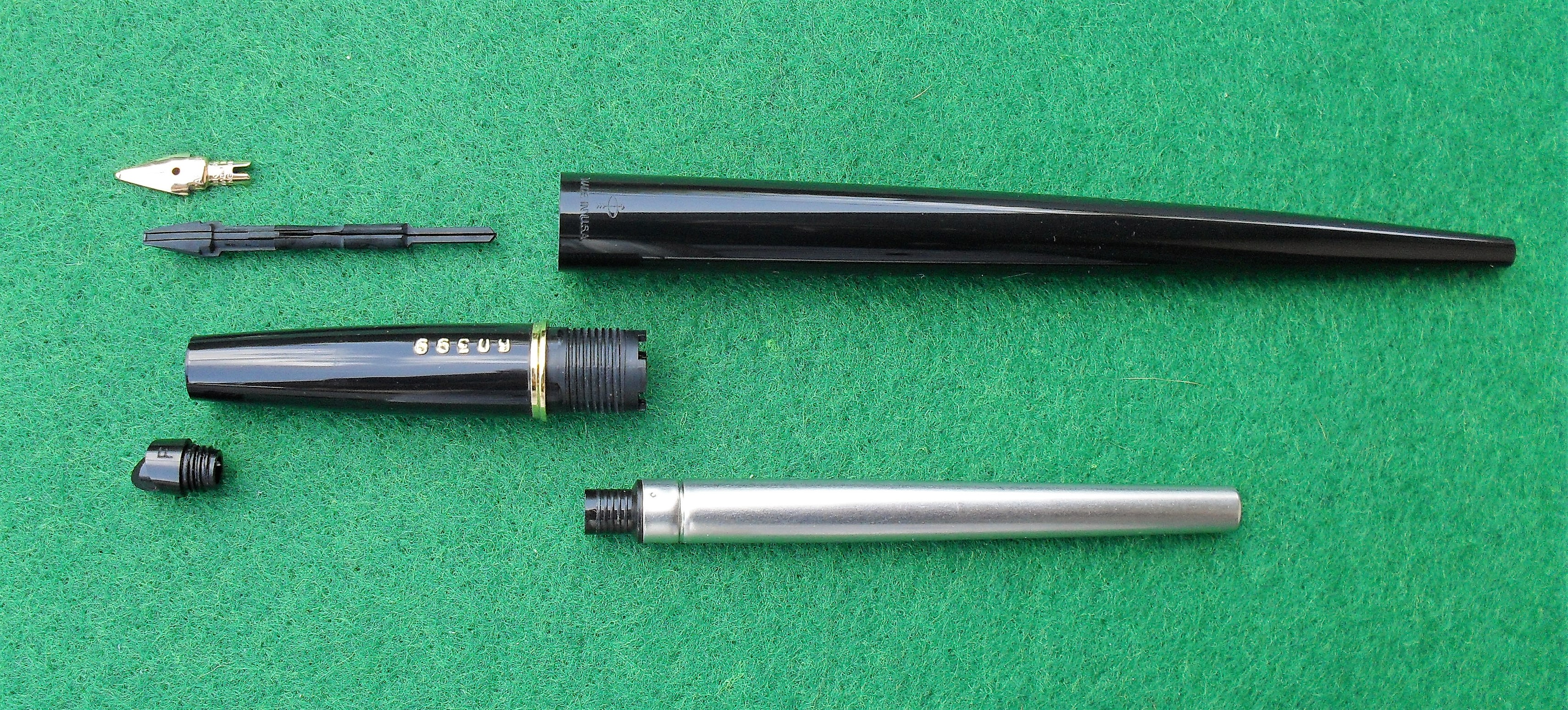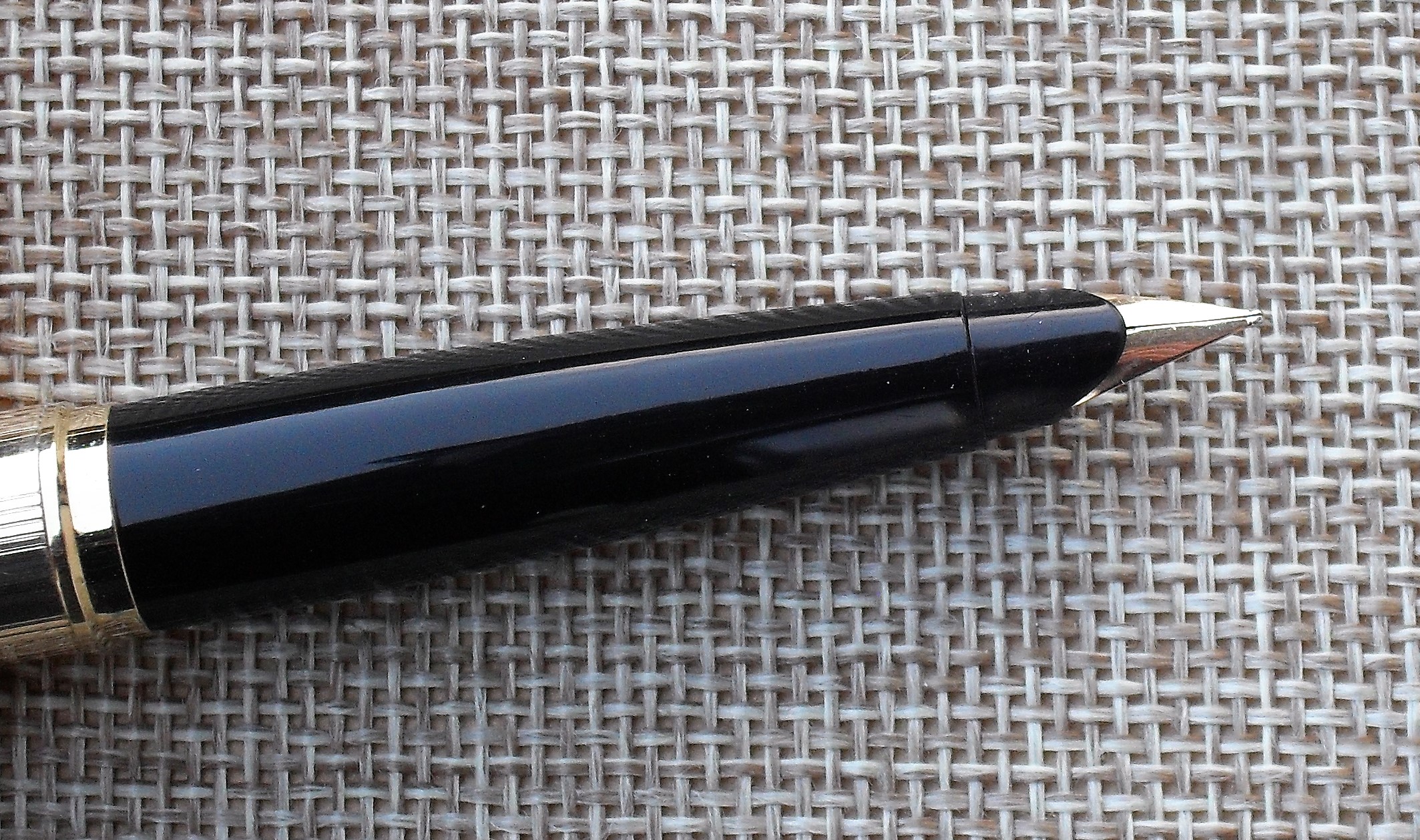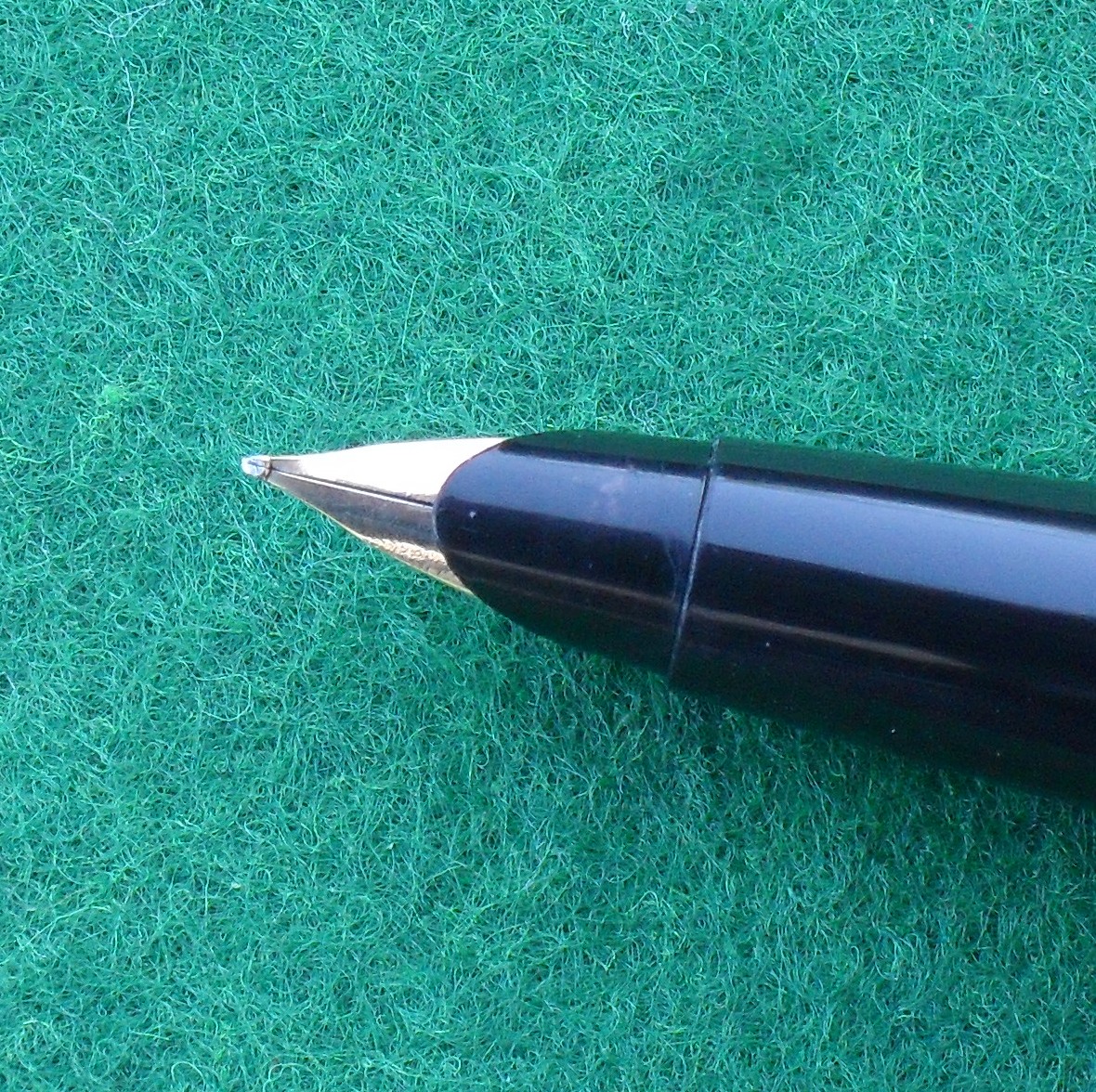 Il bilanciamento è perfetto anche con il cappuccio calzato. La leggerezza della penna garantisce il minimo di stanchezza per la mano anche dopo lunghe sessioni di scrittura. L’impugnatura è convessa, ma non scomoda e la lunghezza della sezione permette d’assecondare tutti i gusti. Molto interessante e comodo l’alloggiamento a vite del gruppo, comodo e semplice da smontare e caratterizzato da un alimentatore molto sottile ma altrettanto efficiente. Piccolissimo il pennino, ma sempre all’altezza di un ottimo rendimento. Le parti in plastica mi pervennero opacizzate in buona parte ma una lucidatura con carta abrasiva finissima e con le paste lucidanti in normale commercio hanno portato facilmente ad una lucentezza circa la quale non avrei scommesso a priori.