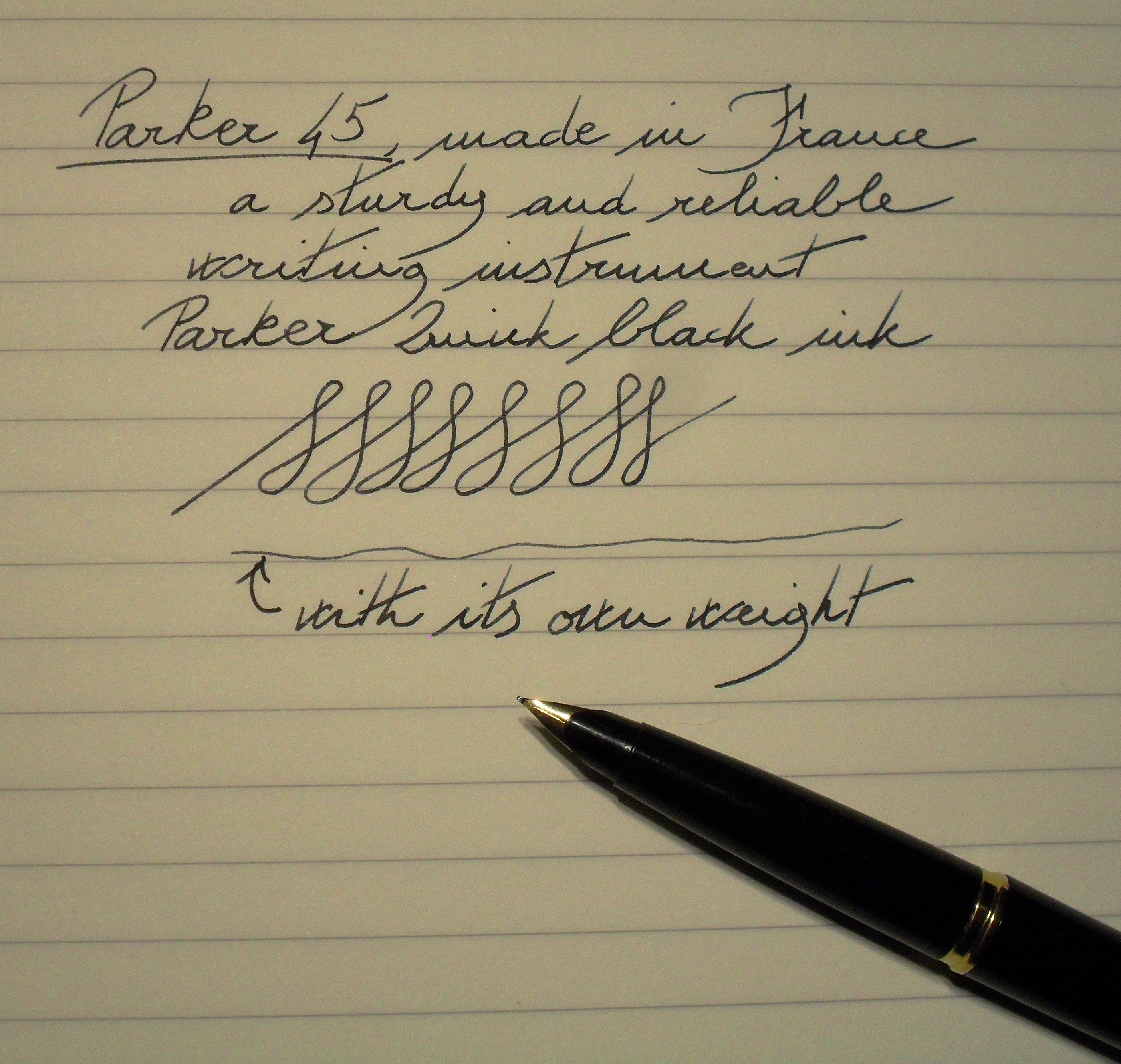 Da fortunato possessore di una 45, confermo le impressioni, è davvero un piacevole scriverci. La mia è degli anni 70, corpo nero, cappuccio acciaio e pennino oro 14 carati, il tutto made in England. Non mi aspettavo una così bella esperienza di scrittura da questa penna, ne sono molto soddisfatto. D'altronde, un motivo doveva esserci se ha venduto così tanto e per così tanti anni.