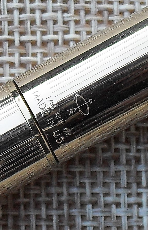 L’ultima arrivata è la 45 Insignia prima maniera, prodotta fra il 1965 ed il 1969, che vedete in queste fotografie. M’è giunta in buone condizioni e devo dire che si tratta d’un valente strumento di scrittura. Il corpo ed il cappuccio sono laminati in oro a 12 carati, mentre il pennino F è d’oro a 14 carati. La posizione dei rebbi, leggermente divaricati, lo trasforma in un M, donando però una qualità di scrittura comunque molto piacevole. Bello il tocco del pannello rettangolare liscio sul fusto, per eventuali incisioni. Quantunque spesso snobbata dai collezionisti, questa stilografica è molto importante storicamente, sia perché introdusse la doppia configurazione di caricamento converter – cartuccia, poi divenuta uno standard mondiale, sia perché fu prodotta, lungo un arco temporale di ben 47 anni, in più di 75 milioni d’esemplari (https://parkerpens.net/parker45.html#:~ ... r%20Parker).
