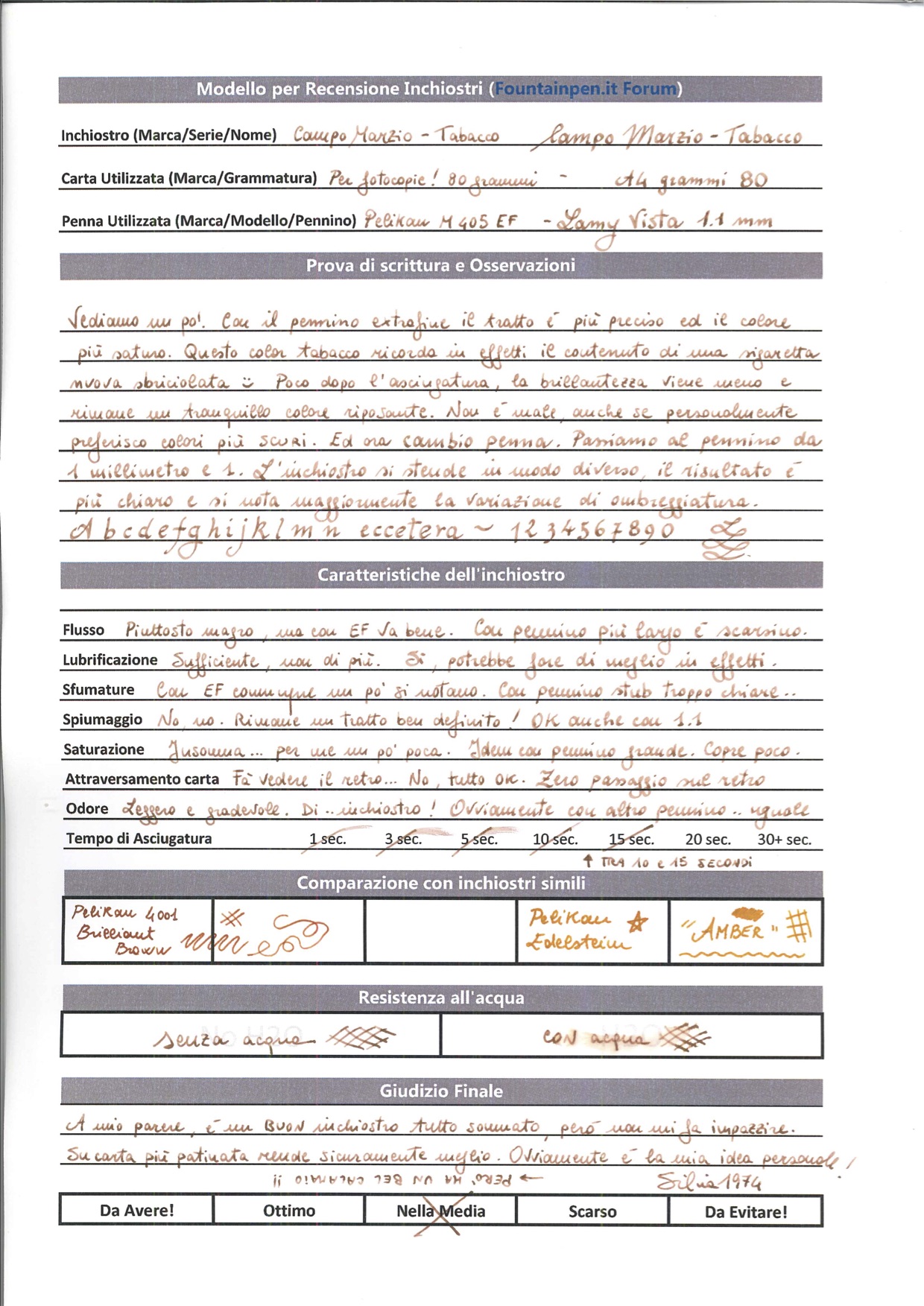 - Il mio inchiostro preferito: Campo Marzio Tabacco