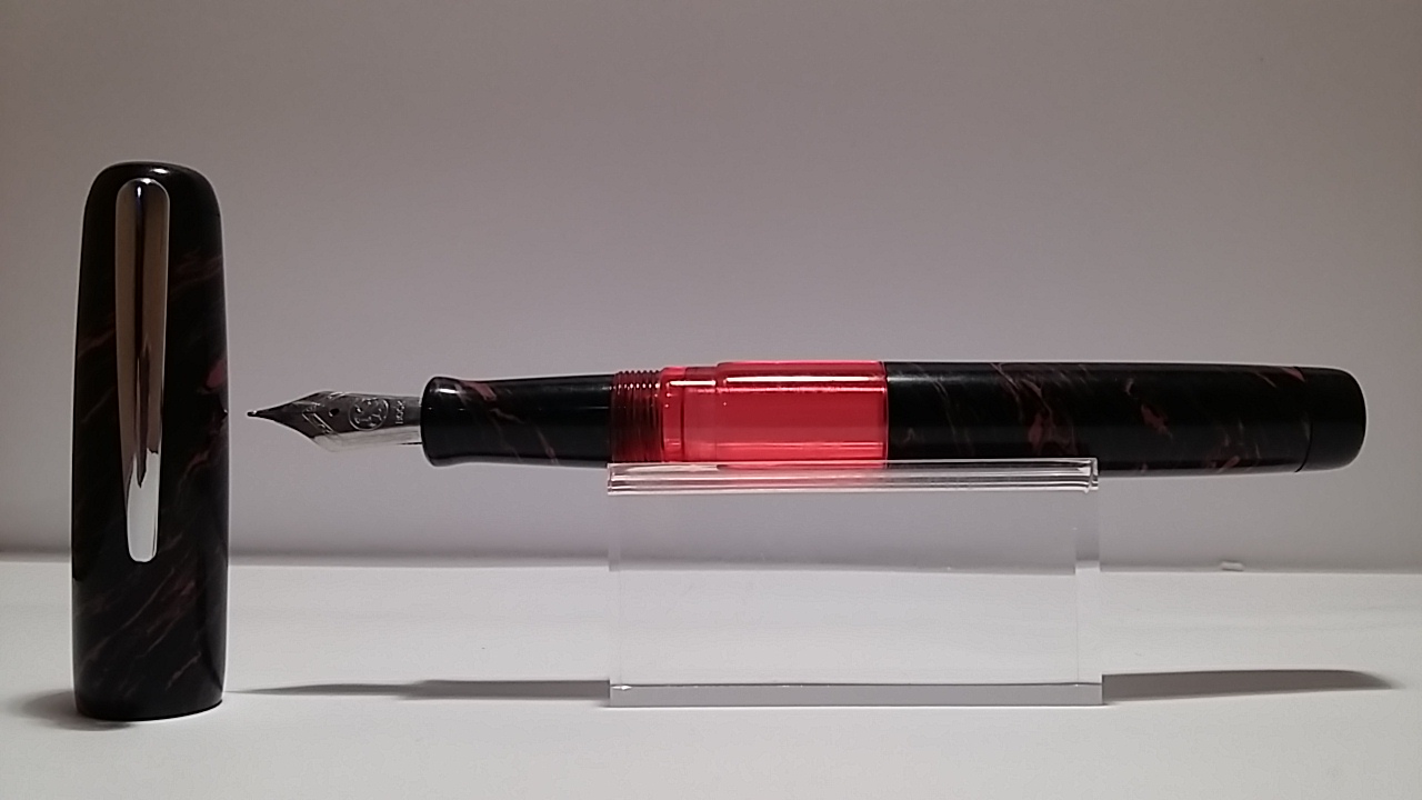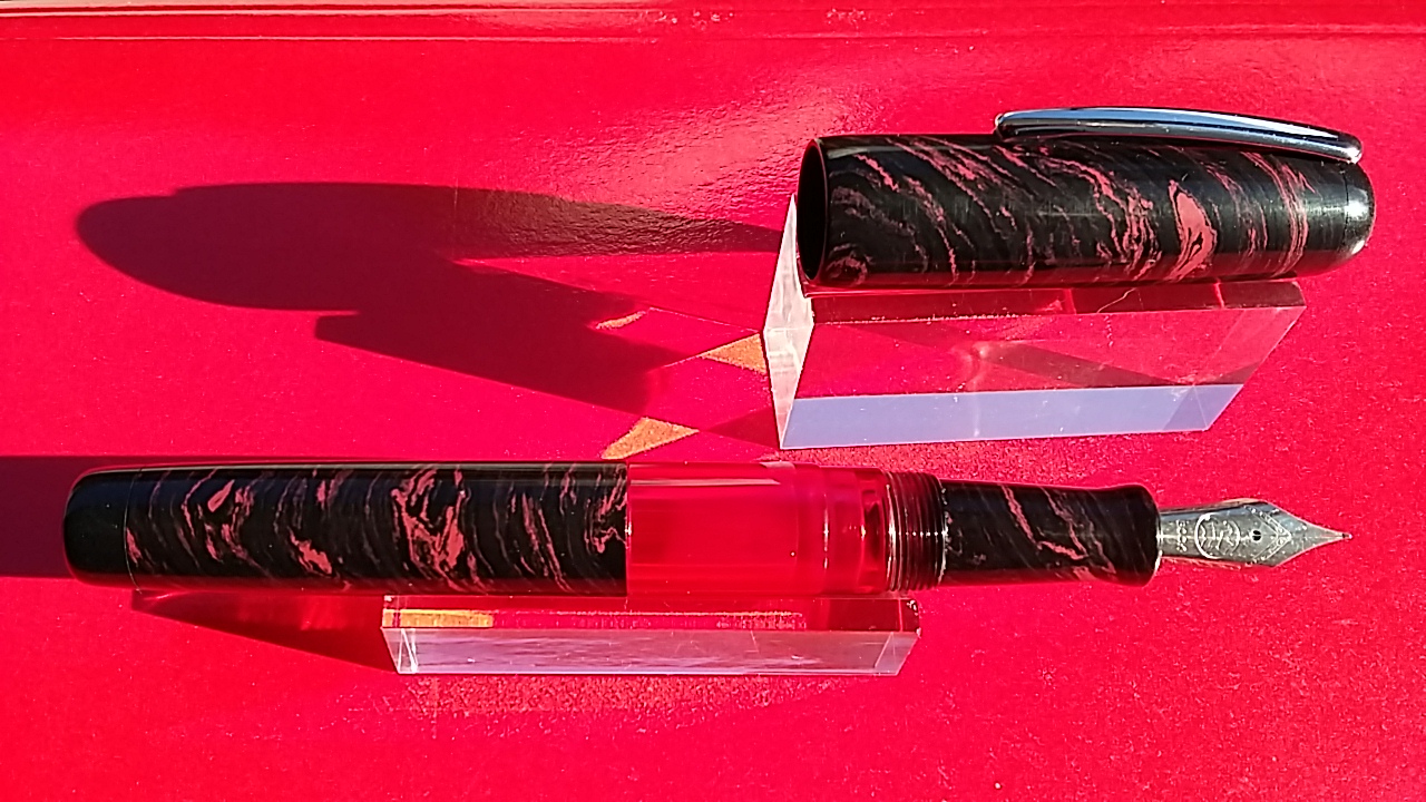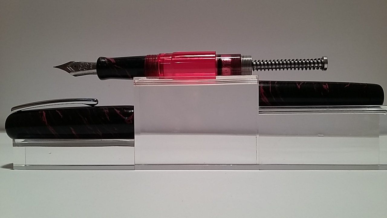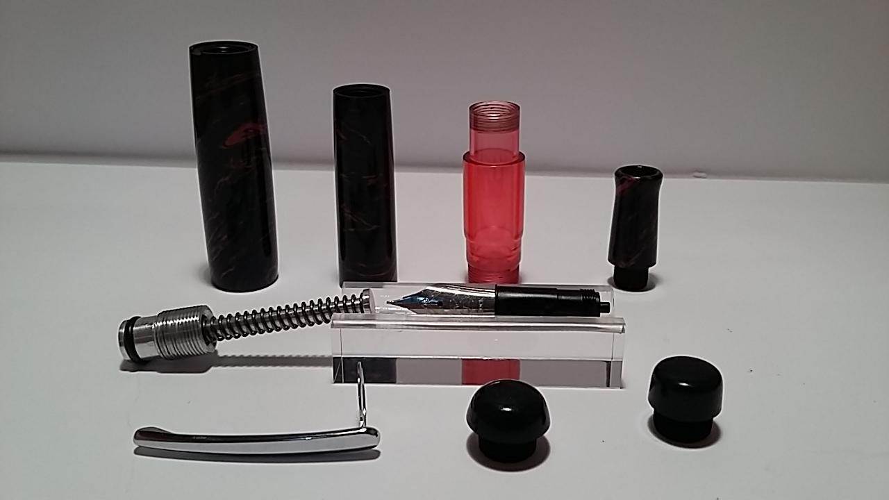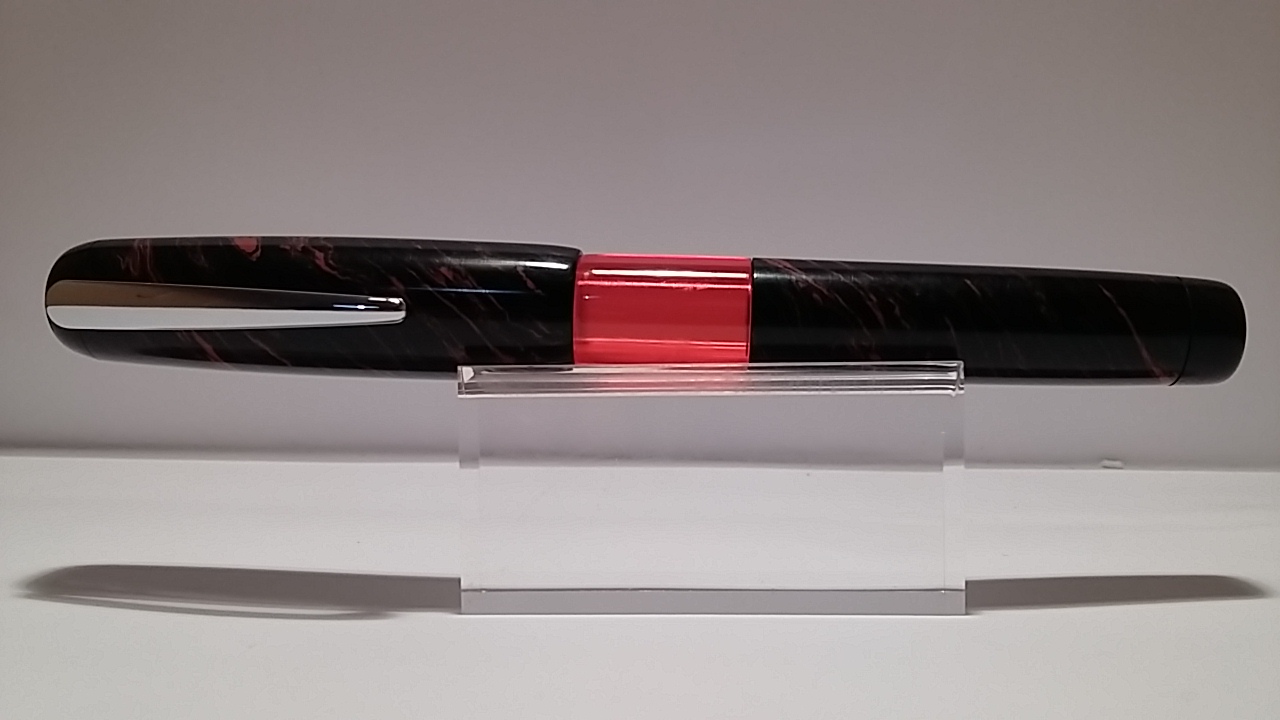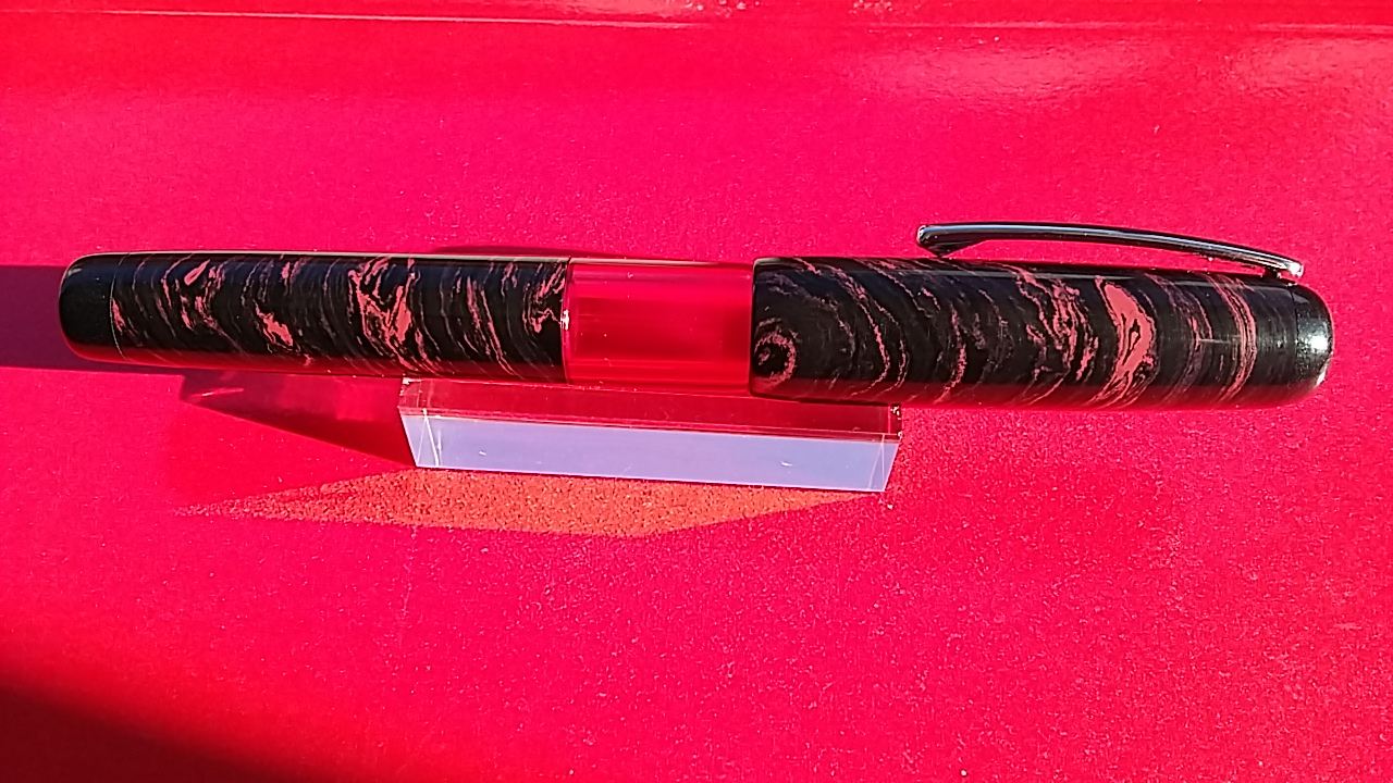 La penna che vi mostro l'ho costruita in ebanite con il serbatoio in metacrilato per visualizzare il livello di inchiostro.