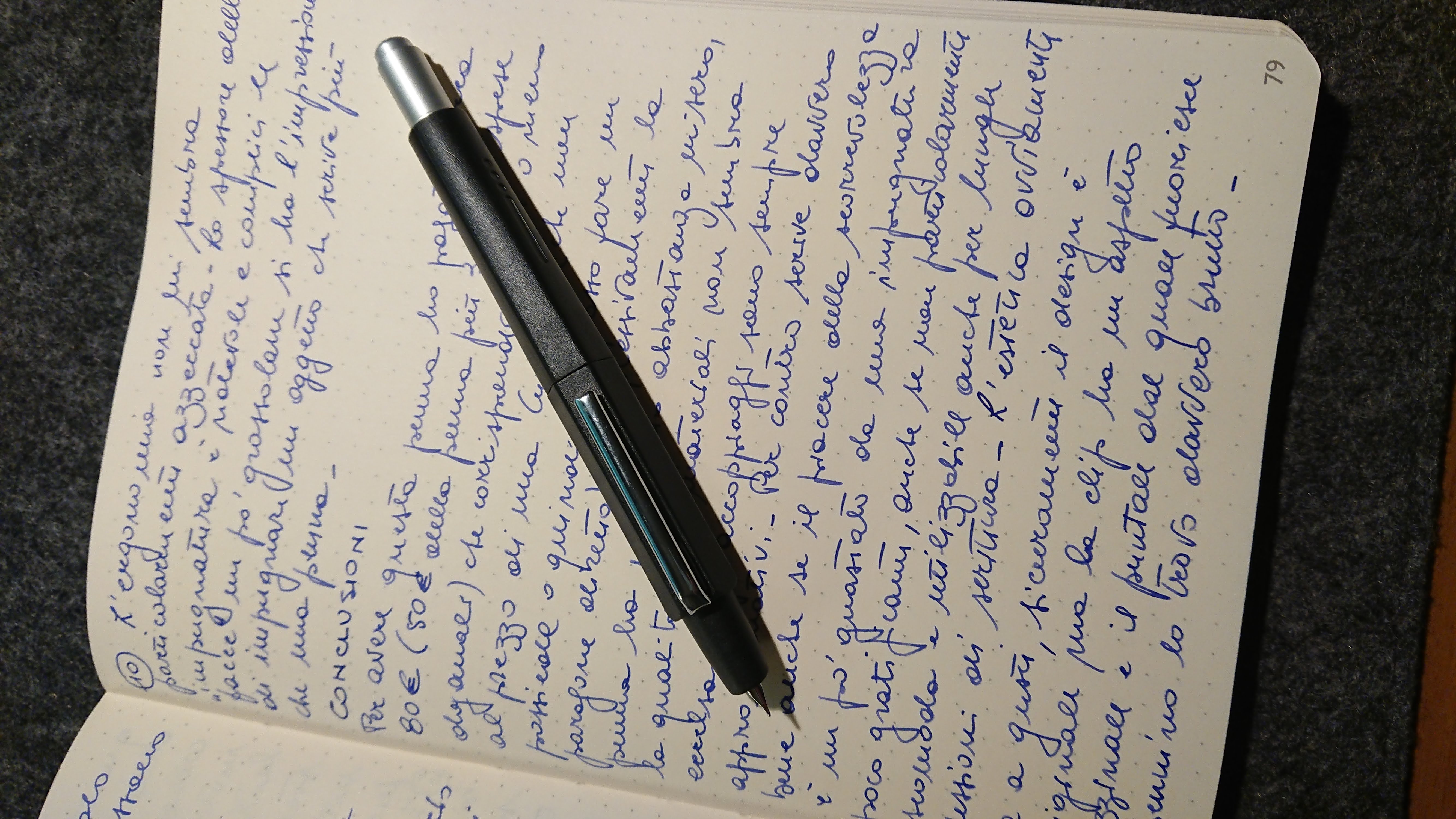Concordo pienamente sul fatto che la rotazione di fatto annulli in buona parte la comodità della penna "a scatto". E' lo stesso problema che, secondo me, affligge le Capless LS che dovrebbero essere il modello di punta di questa penna ma che di fatto le rende meno intuitive di quelle "normali" ...oltre ad avere un prezzo un pochino altopiccardi ha scritto: ↑venerdì 12 maggio 2023, 11:12 La provai quando uscì, ma la concorrenza secondo me è poca, la Capless si manovra con una mano in maniera naturale per il funzionamento a scatto, il meccanismo a rotazione della Dialog la rende assai meno immediata da usare (sostanzialmente la devi aprire con due mani).