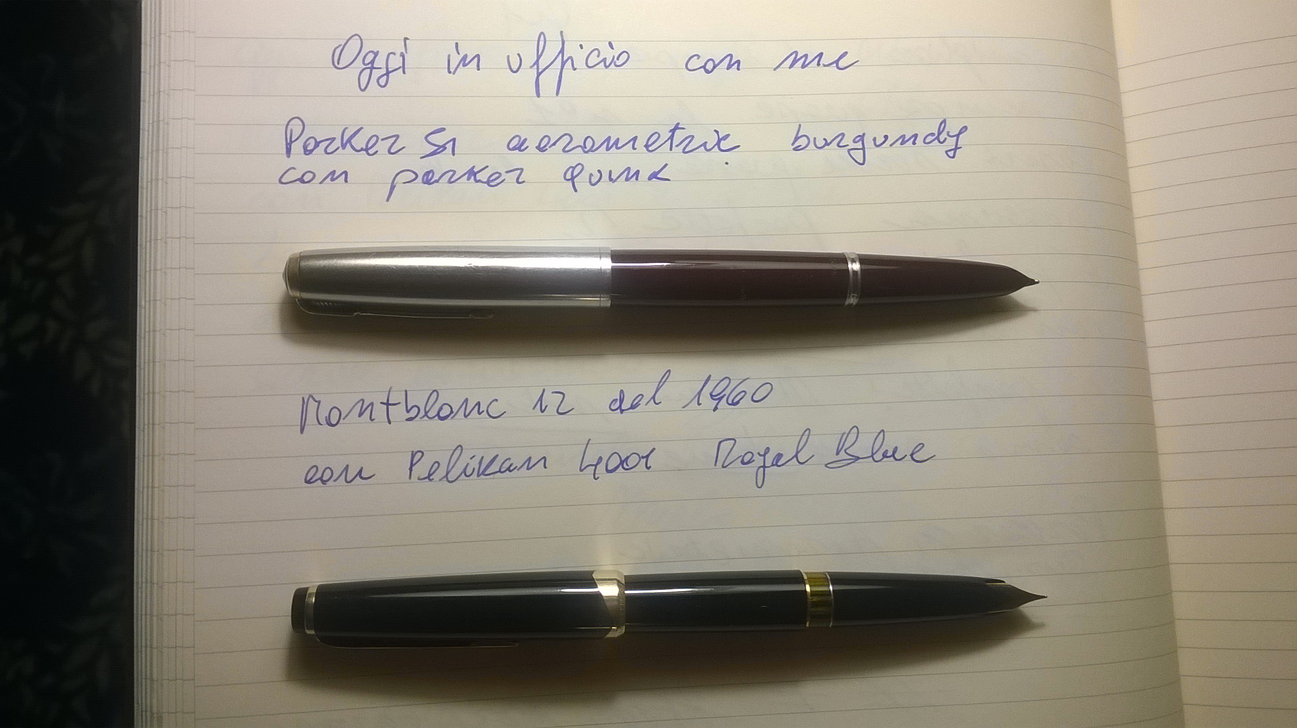 Parker 51 Aerometric con Parker Quink lavabile blu che ha da poco un nuovo pennino M che ho dovuto un po' riallineare ( e mi è andata bene!!)