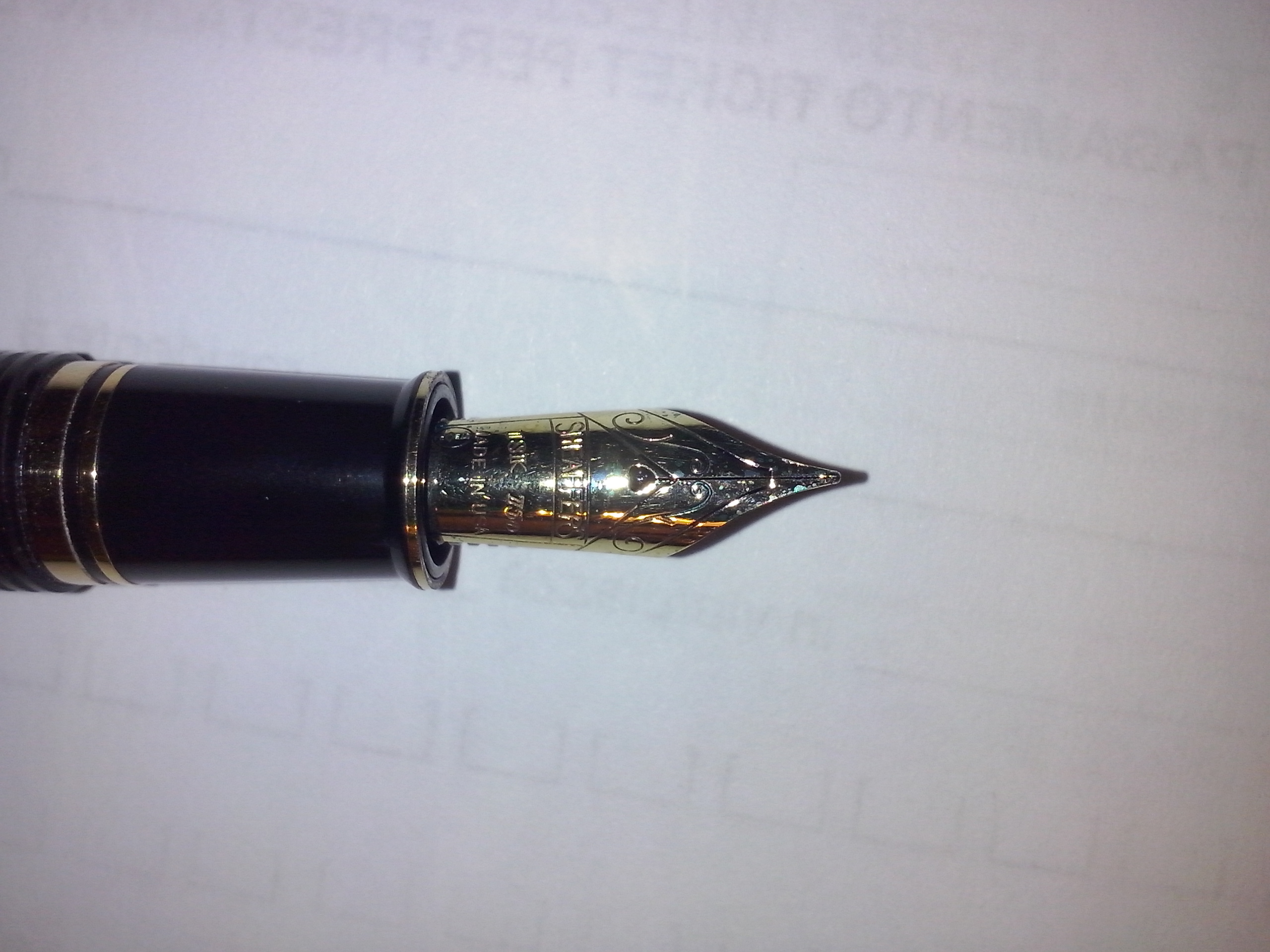 Il pennino , semirigido, è in oro 18 carati, monocolore, dal taglio medio-fine.