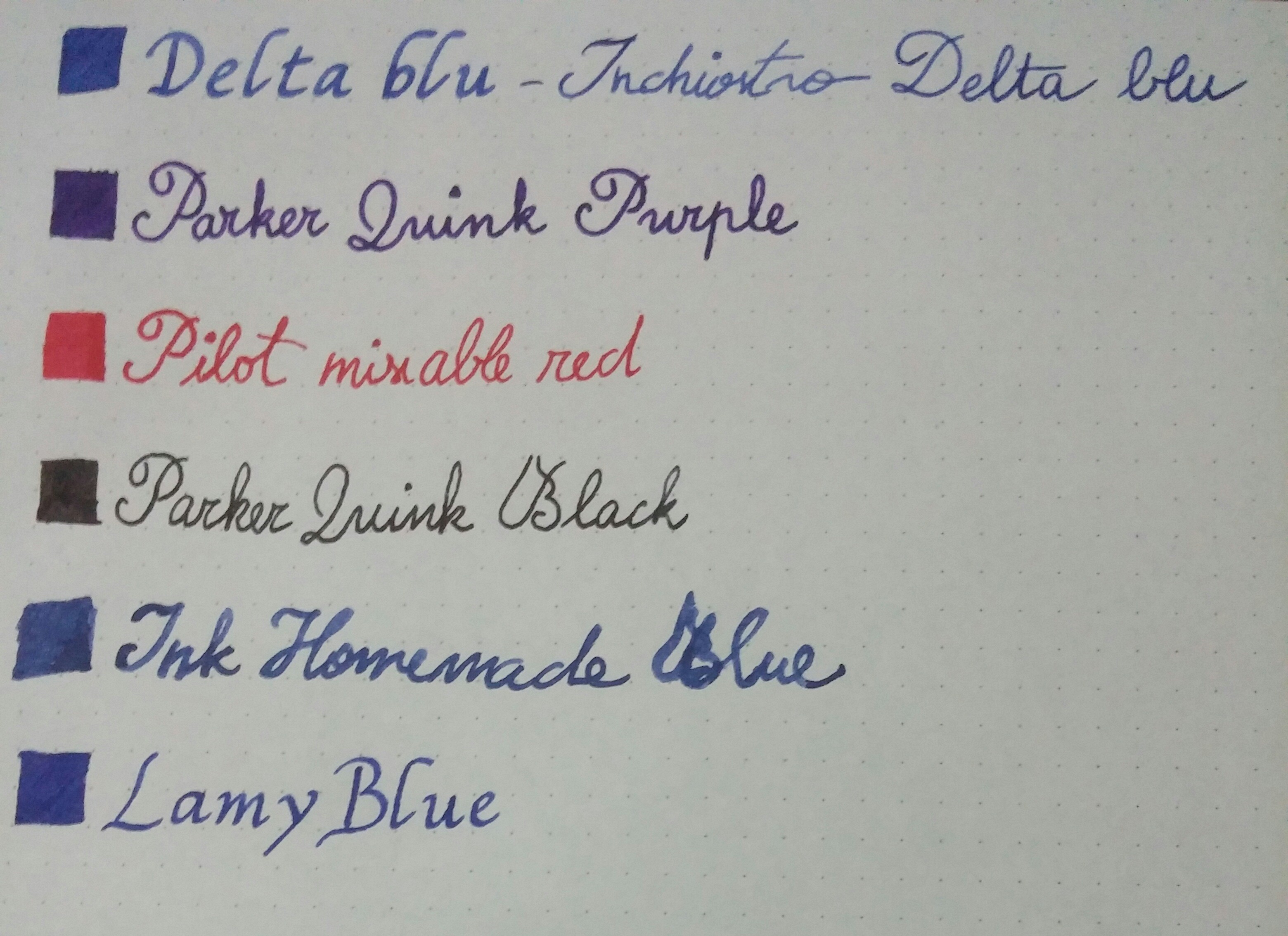 Ecco la mia, per ora povera, lista di inchiostri. Quelli che uso di più sono i due Parker e il Delta.