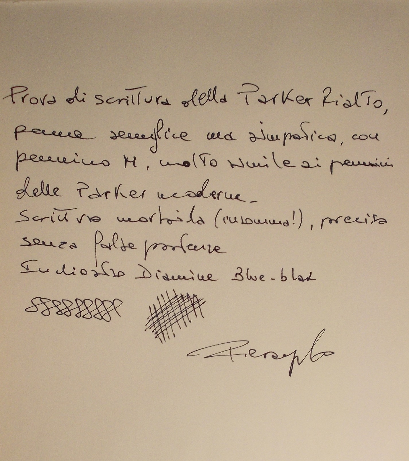 La scrittura è liscia, scorrevole senza false partenze se si utilizza di frequente (a me è partita anche dopo due giorni di riposo). Scrivendo velocemente, però qualche tratteggio salta fuori; va beh poco male.