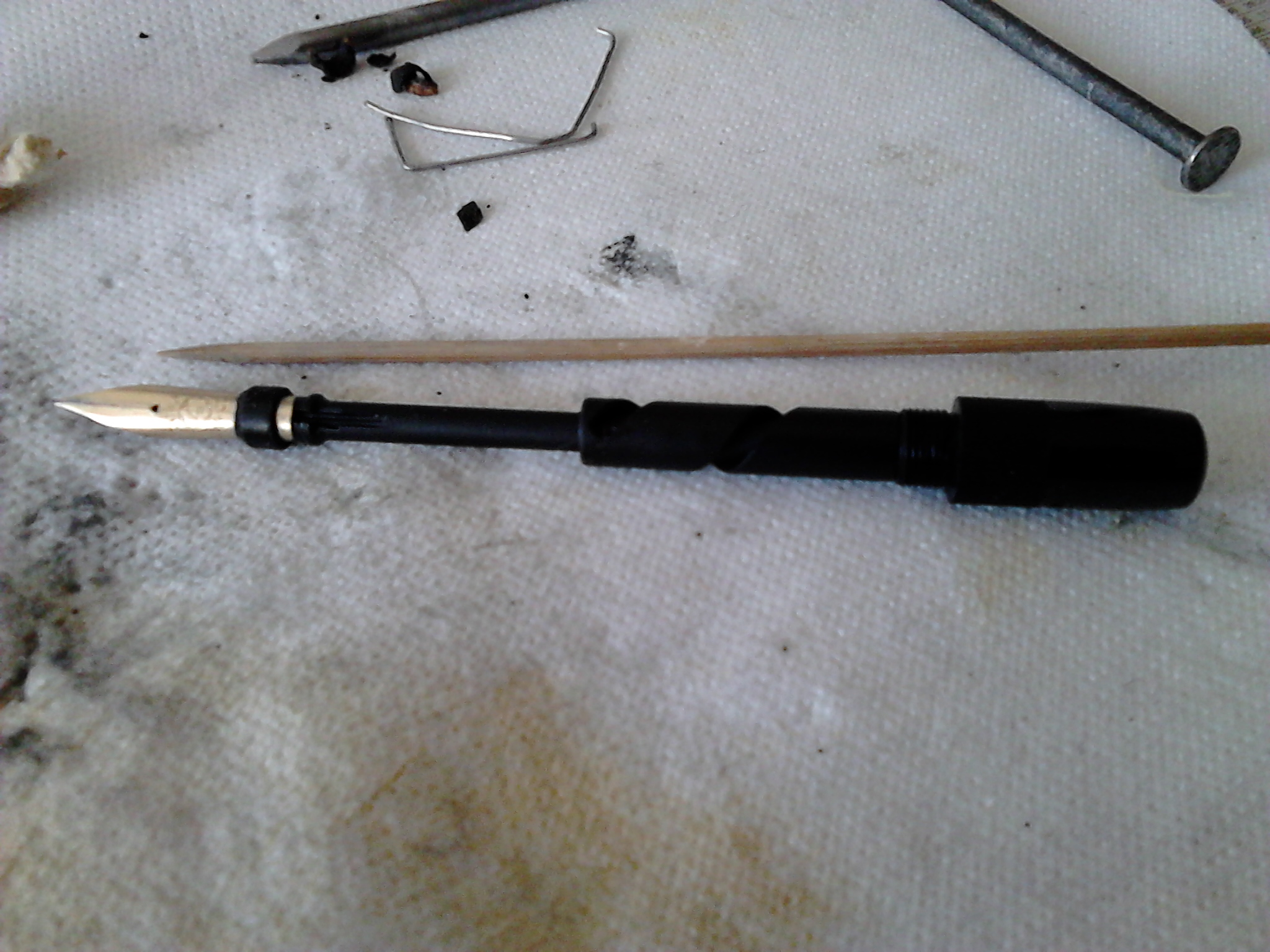 Ho pulito e rimontato il pennino sullo stelo per mezzo della sua fascetta stando attento a cenrarlo bene.