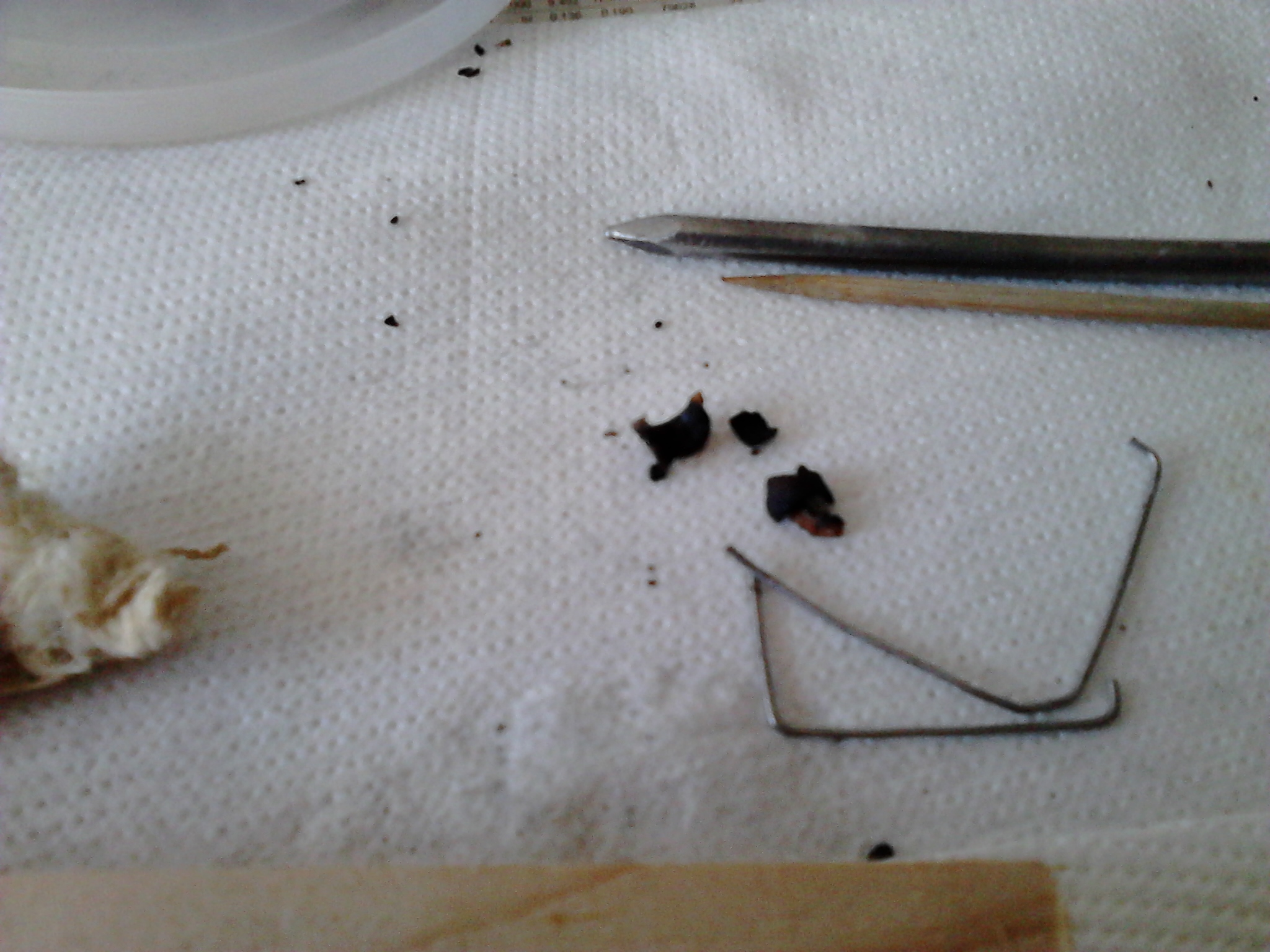 Per ultimo ho tolto il fondello facendo uscire il pernetto in ottone con un chiodino a cui ho mozzato la punta e usato come cacciaspine.