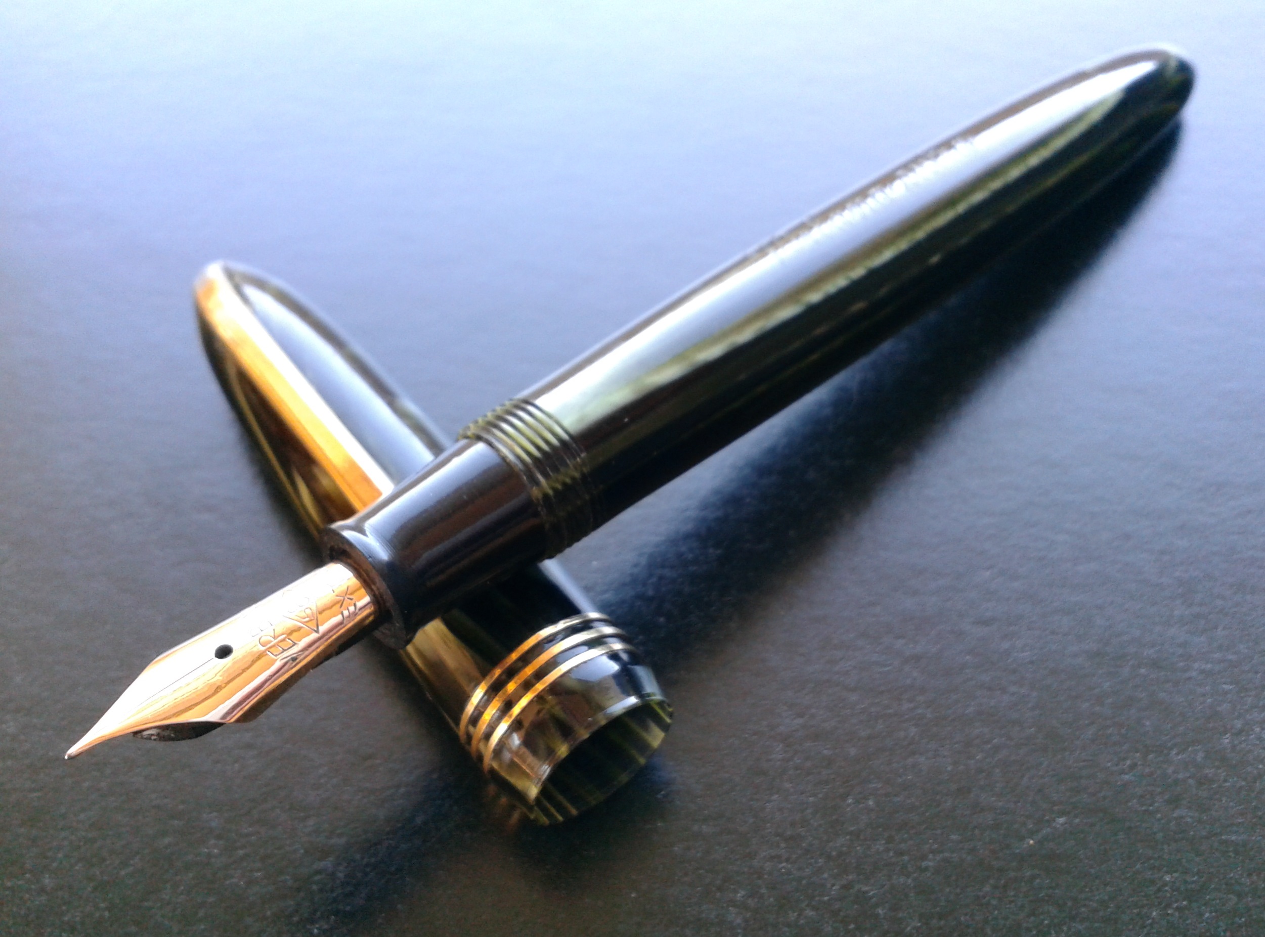 - il pennino è in oro ed è "dedicato": in fase di scrittura mostra un tratto F/M ed è piacevolmente flessibile.