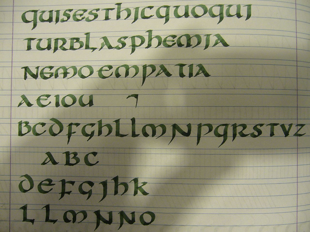 In aggiunta alcuni esercizi di Onciale, uno dei miei stili preferiti, eseguito con una banalissima Brause da 2 mm e inchiostri Herbin e Private Reserve Ink.