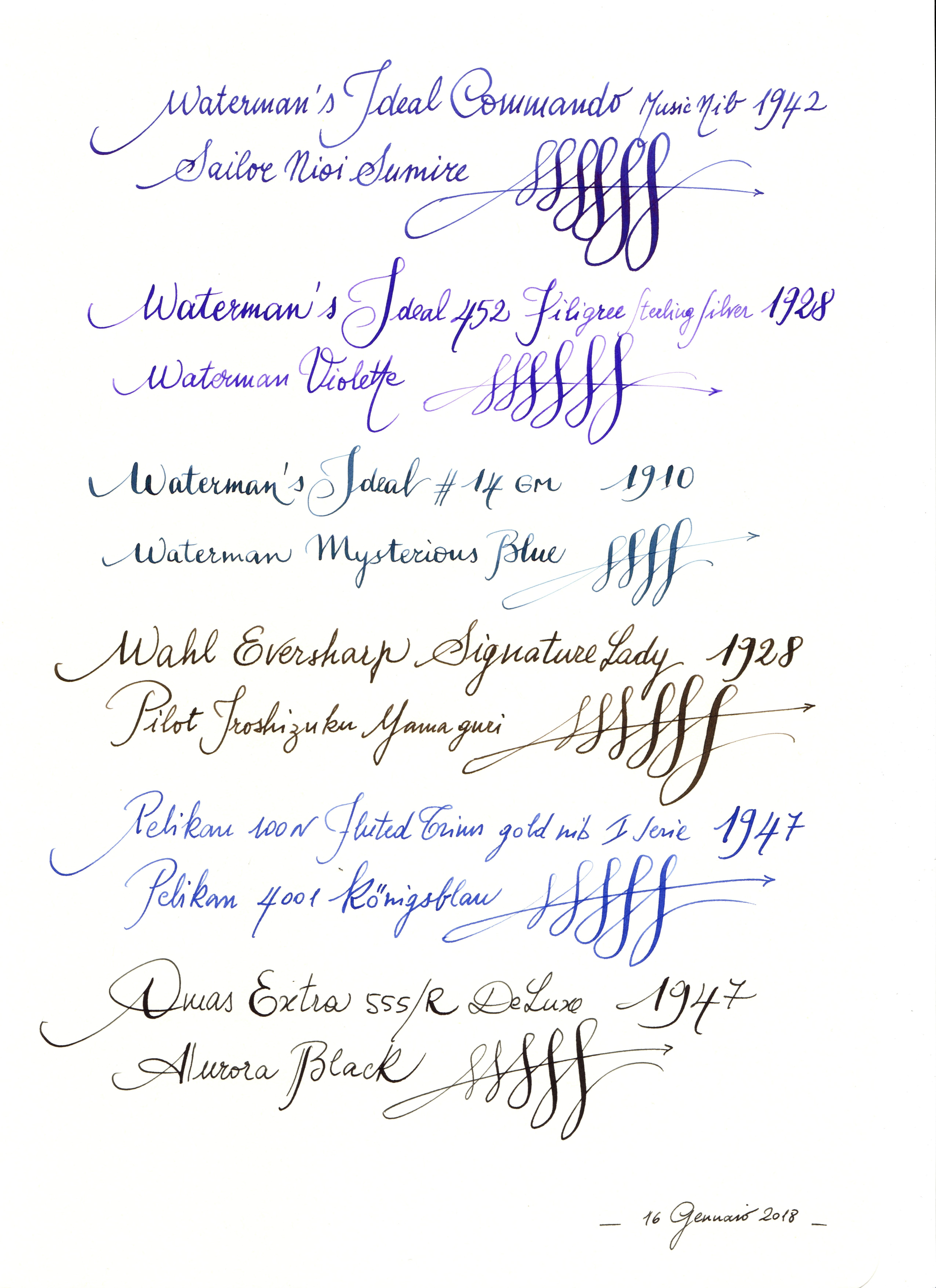 Il mese scorso ho così ritrovato il secondo notebook "meranese", e ricordando il cattivo giudizio di Mimmo (espresso in altro argomento, ma dopo qualche anno) sulla carta 100g./m2, ho voluto verificare le mie buone impressioni di allora, sottoponendo il quaderno al fuoco incrociato di alcune arzille "vecchiette"...