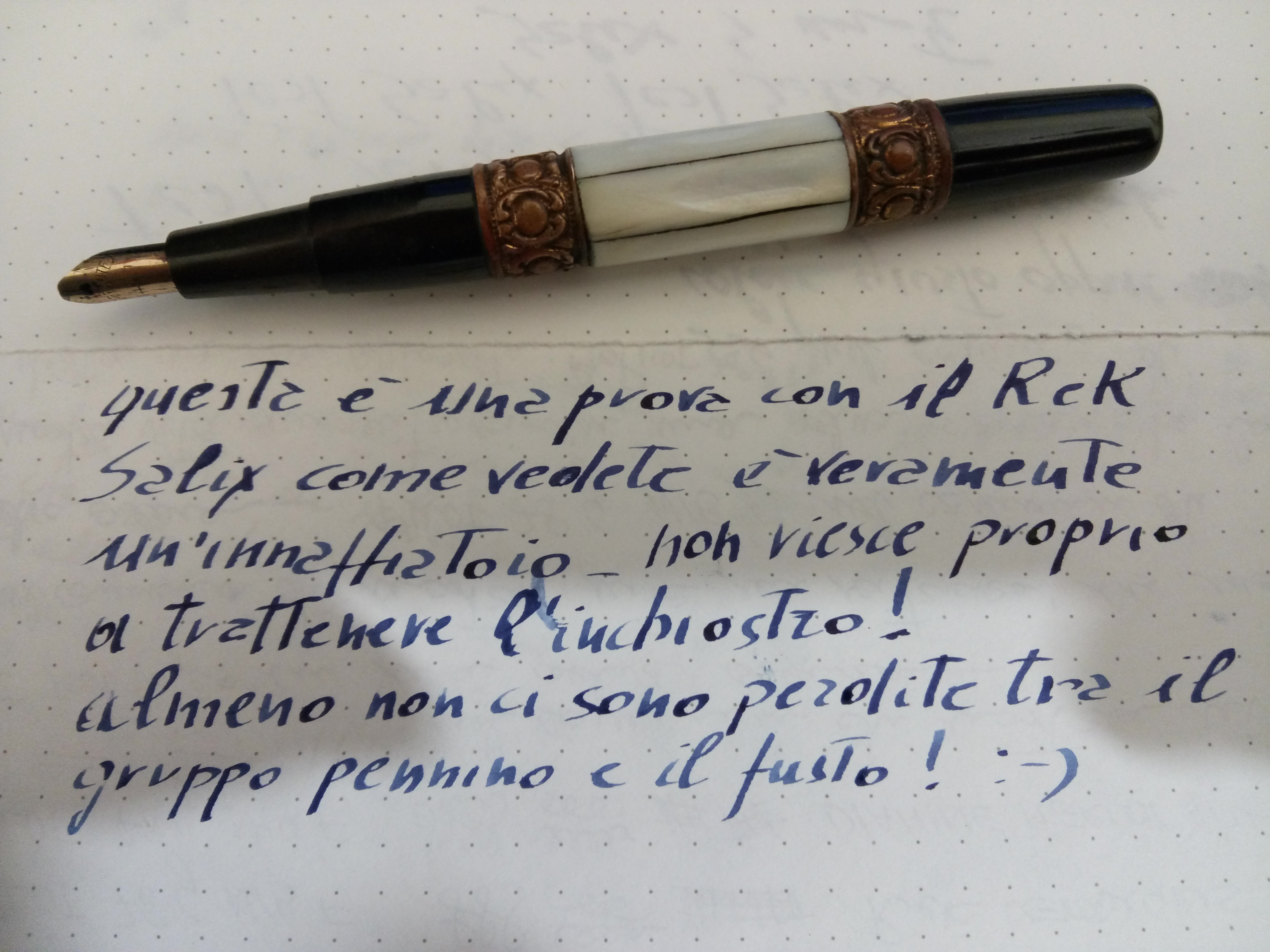 Ho messo qualche goccia i inchiostro (R&K verdigris) e la penna è..... un' innaffiatoio come dite voi esperti!