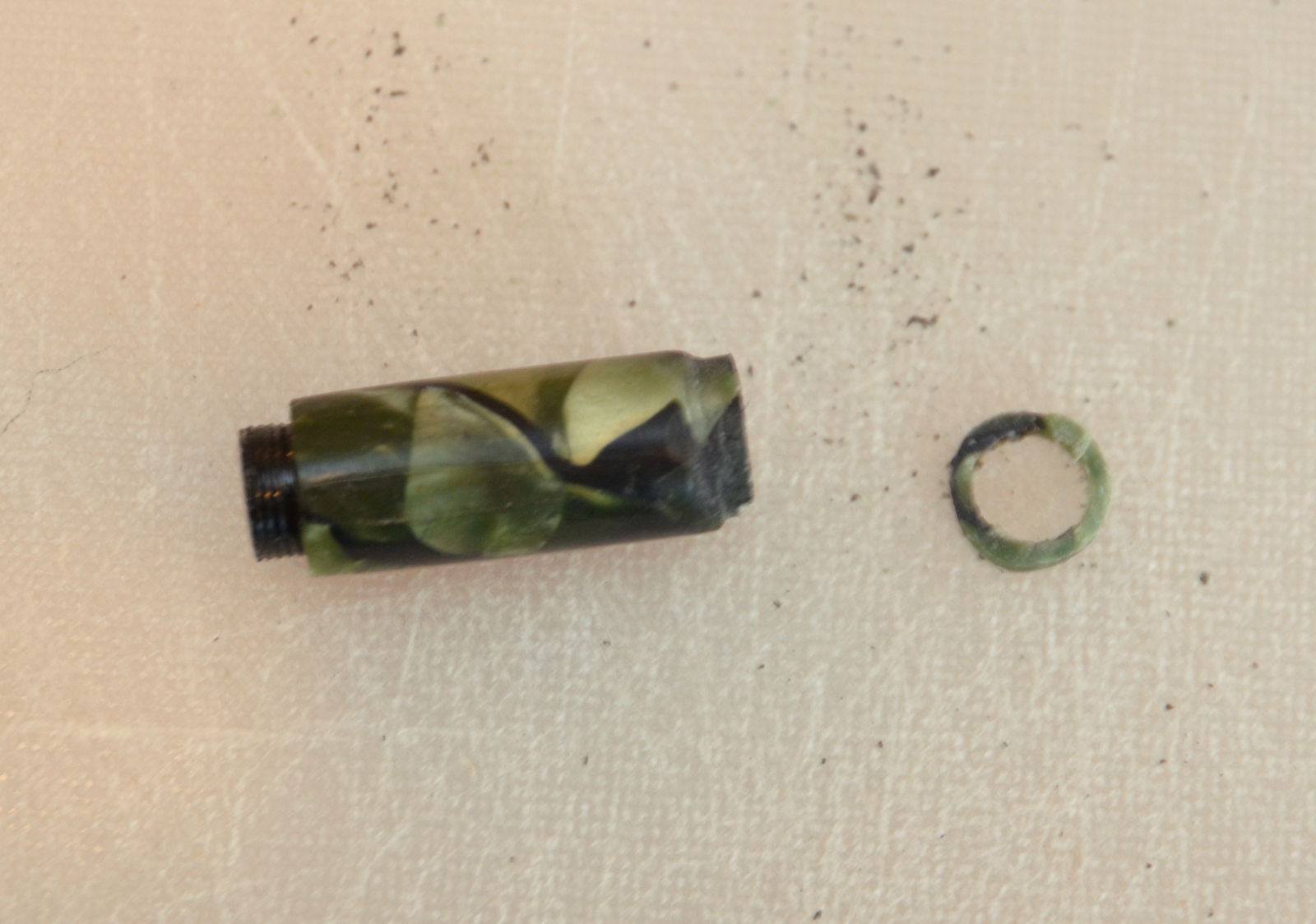 Foto 2) dallo spezzone assottigliato di celluloide del fusto dove era stata presa la parte per la riparazione. si taglia un anello di un paio di mm.