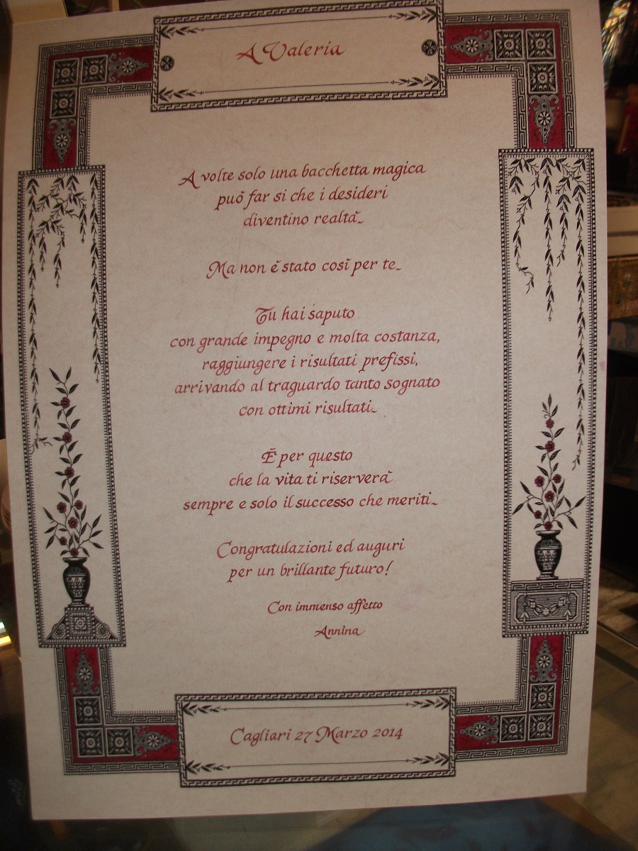 A me farebbe molto piacere che tua madre si iscrivesse e magari collaborasse con il Gruppo Calligrafi, dando utili indicazioni ai tanti appassionati che si stanno già cimentando (o lo faranno in futuro) in qualche stile calligrafico!