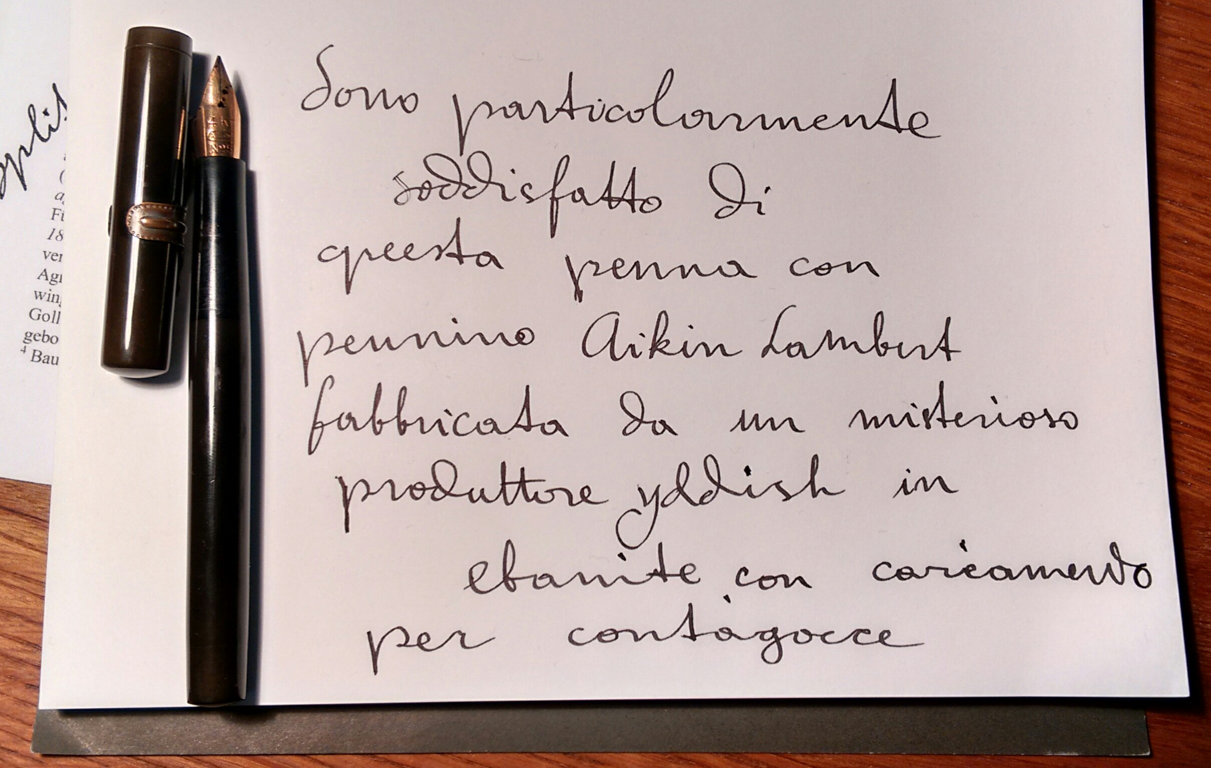 Come sconosciuto?kircher ha scritto:Penna di sconosciuto fabbricante con marchio in yddish e pennino aikin lambert grande e flessibile