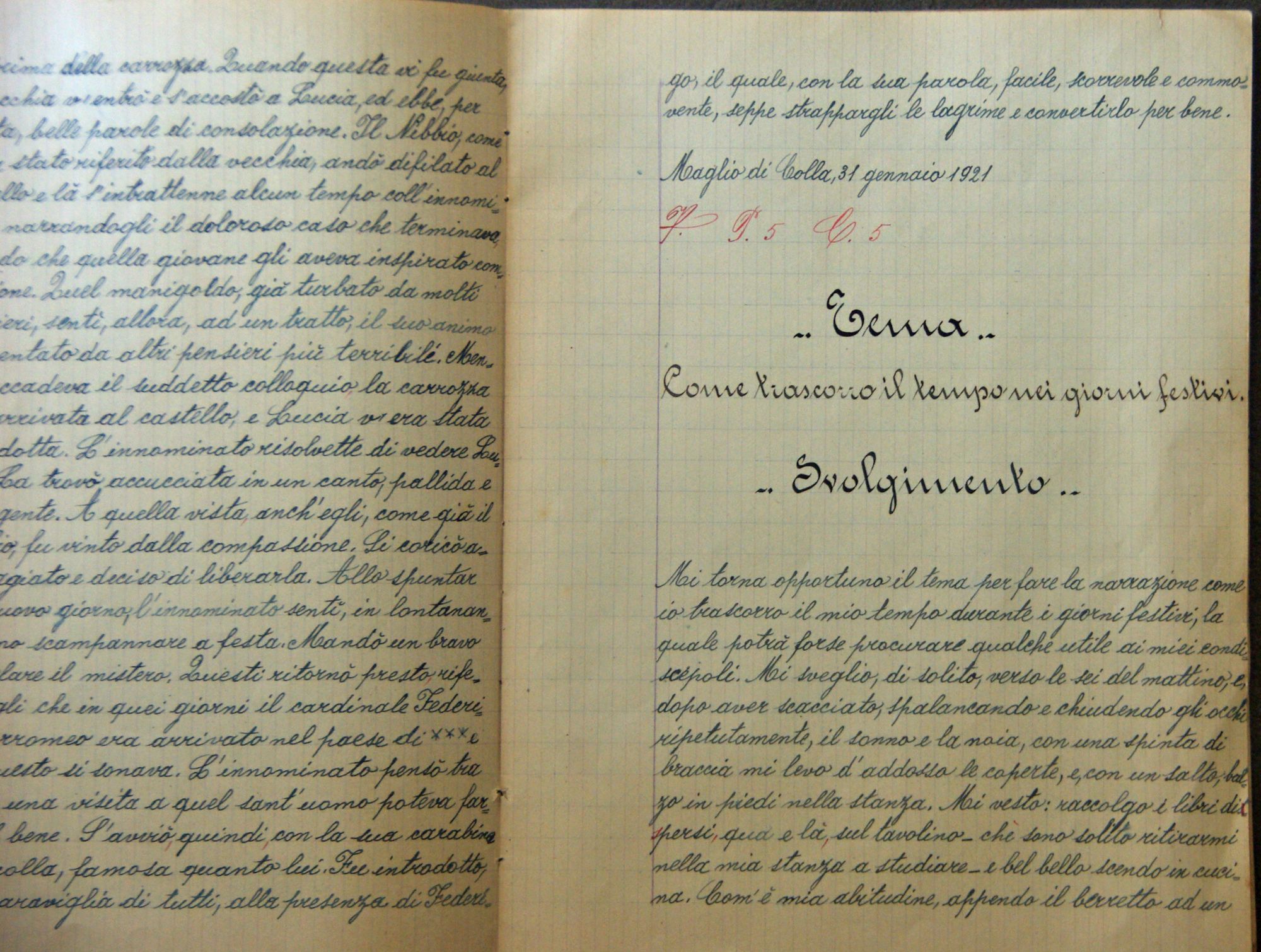 Quello che colpisce, leggendo questi quaderni secondo me è l'ordine, ordine nella calligrafia ma che è anche il riflesso, la conseguenza, di un ordine morale nei valori e nel comportamento.