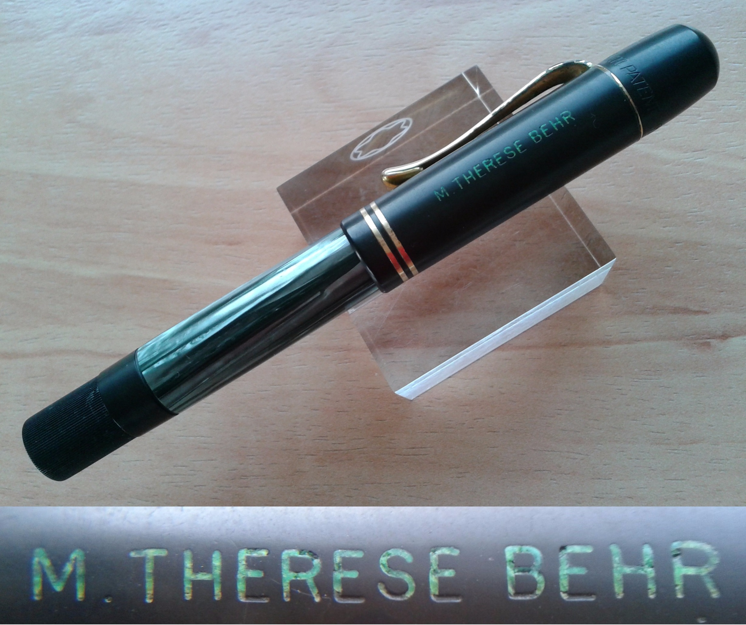 Dopo una parentesi negli Stati Uniti (dove la famiglia risiedette dallo scoppio della Guerra alla fine delle ostilità), alla morte del marito nel 1951 Therese Behr si stabilì definitivamente a Tremezzo, dove continuò ad insegnare. Ed è a questa sua attività di didatta instancabile che colleghiamo la storia successiva della penna: dai primissimi anni 1930, quando con gioia e deferenza fu acquistata per farne gradito dono a Madam Behr, la Pelikan100 della nostra recensione fu conservata per poi essere donata con affetto ad un'allieva prediletta prima della morte, avvenuta nel 1959.