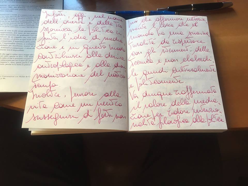 Le stilografiche fanno parte del mio lavoro, dal momento che sono uno studioso di filosofia e riempio quaderni di appunti scritti rigorosamente con le mie penne stilo. Scrivo anche i libri a mano con le stilografiche. Il computer mi serve solo per ricopiare