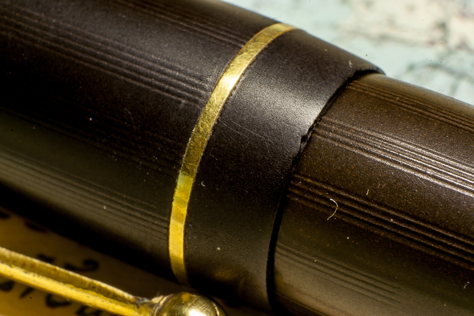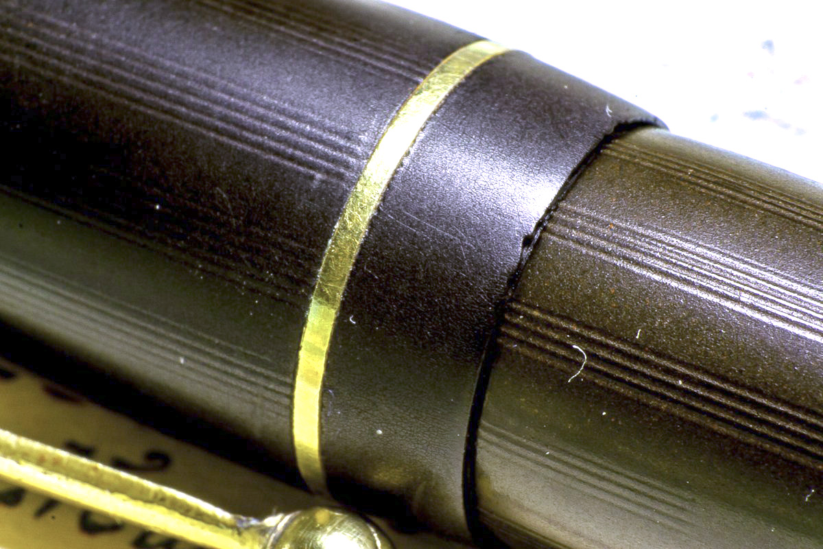 Per quanto riguarda il ripristino dell'ebanite, probabilmente devo regolarmi meglio con la pasta abrasiva. Se dai un'occhiata a questa foto che ti ripropongo, noterai come la decorazione sia molto più definita nel fusto di quanto non lo sia nel cappuccio.