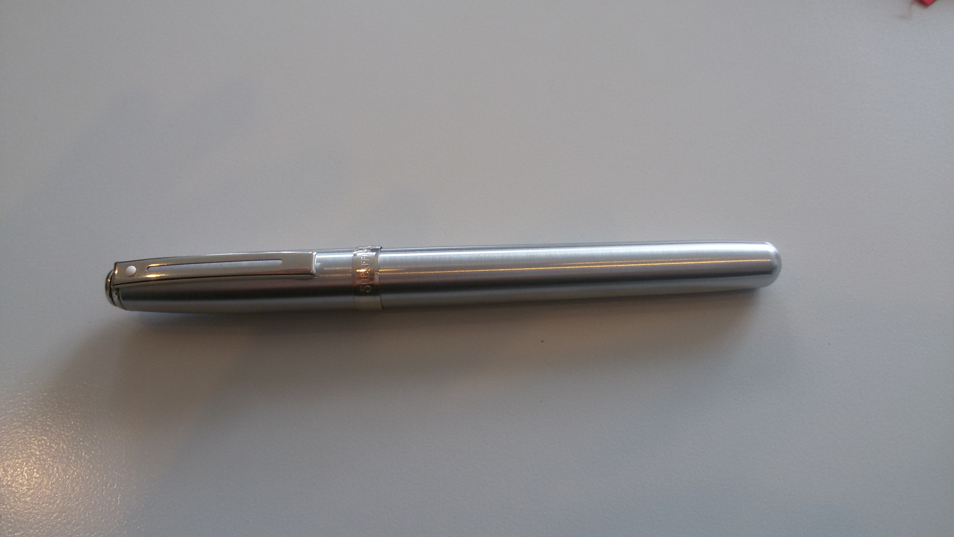 Un saluto a tutti. Volevo presentare brevemente la Sheaffer Prelude Steel HT, una penna che ho acquistato da un paio di mesi, ma che ho scoperto essere molto probabilmente piuttosto vecchiotta; in un precedente mio intervento, Der Alt infatti me lo aveva segnalato. Questo, perchè avevo detto, e confermo, che sull'anello alla base del cappuccio, posteriormente, c'è la scritta USA, il che dovrebbe stare a significare che la mia Prelude è stata prodotta molti anni fa, prime del trasferimento in Cina della produzione stessa.