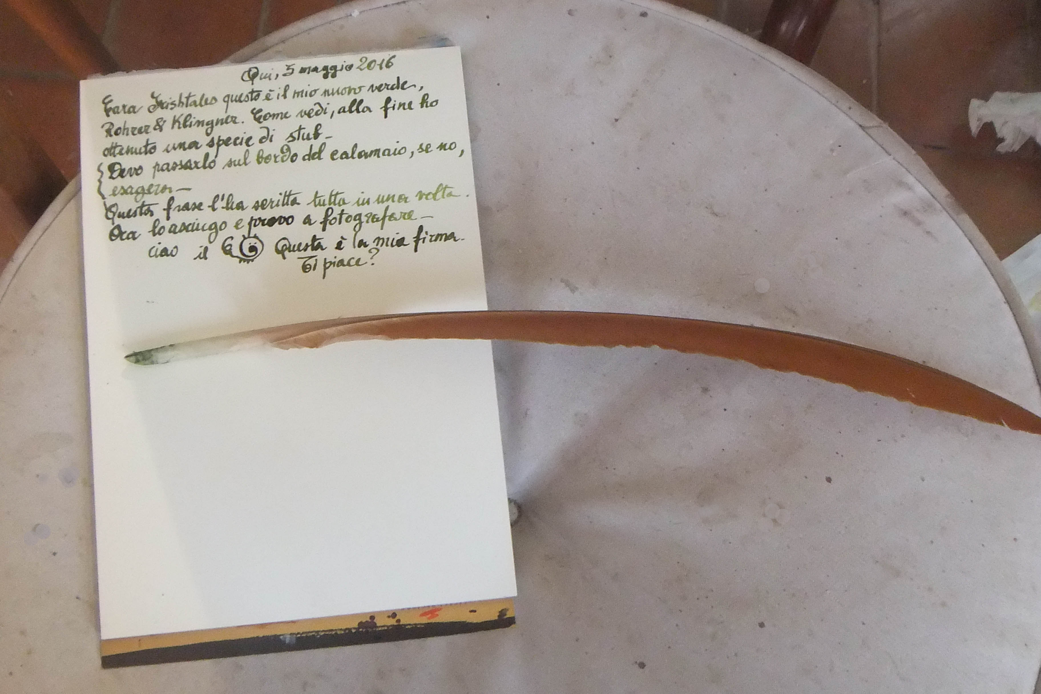 ieri sera, dopo avere a lungo pensato, grugnito, e riflettuto, ho preso una penna di pavone e con un tagliabalsa mi sono fatta una penna per scrivere.