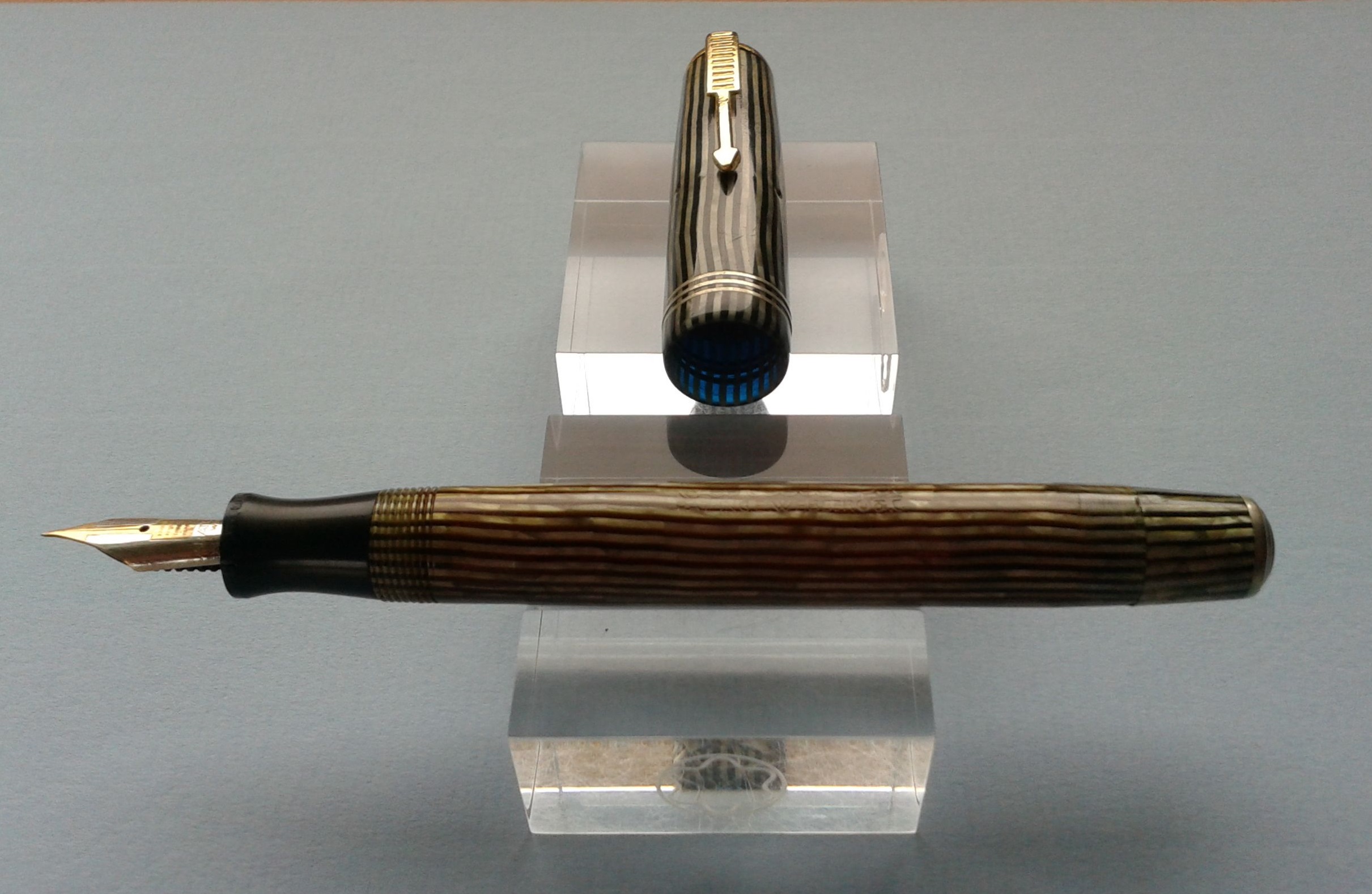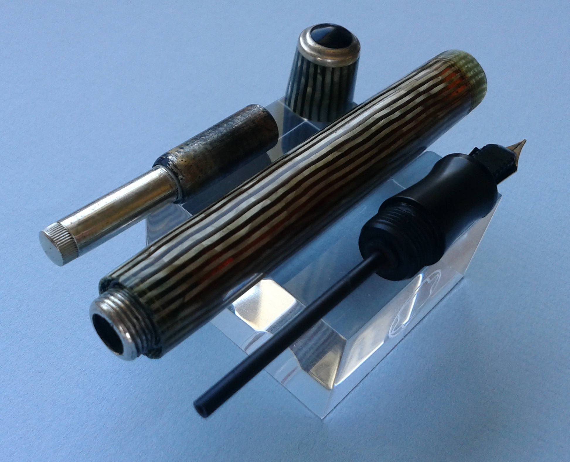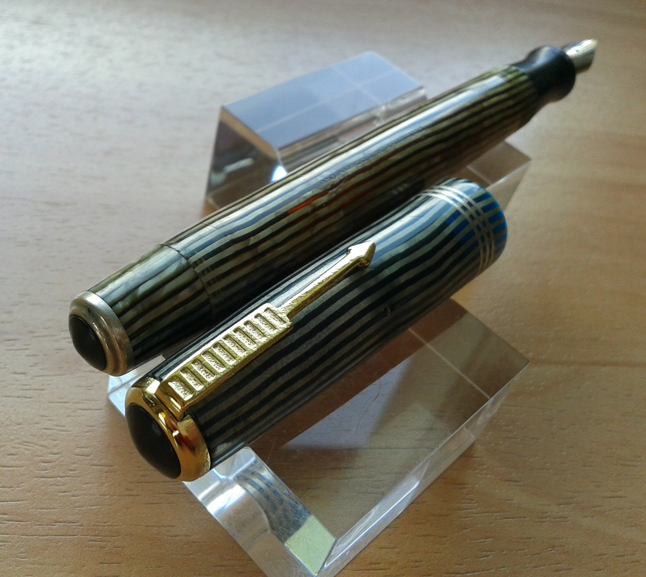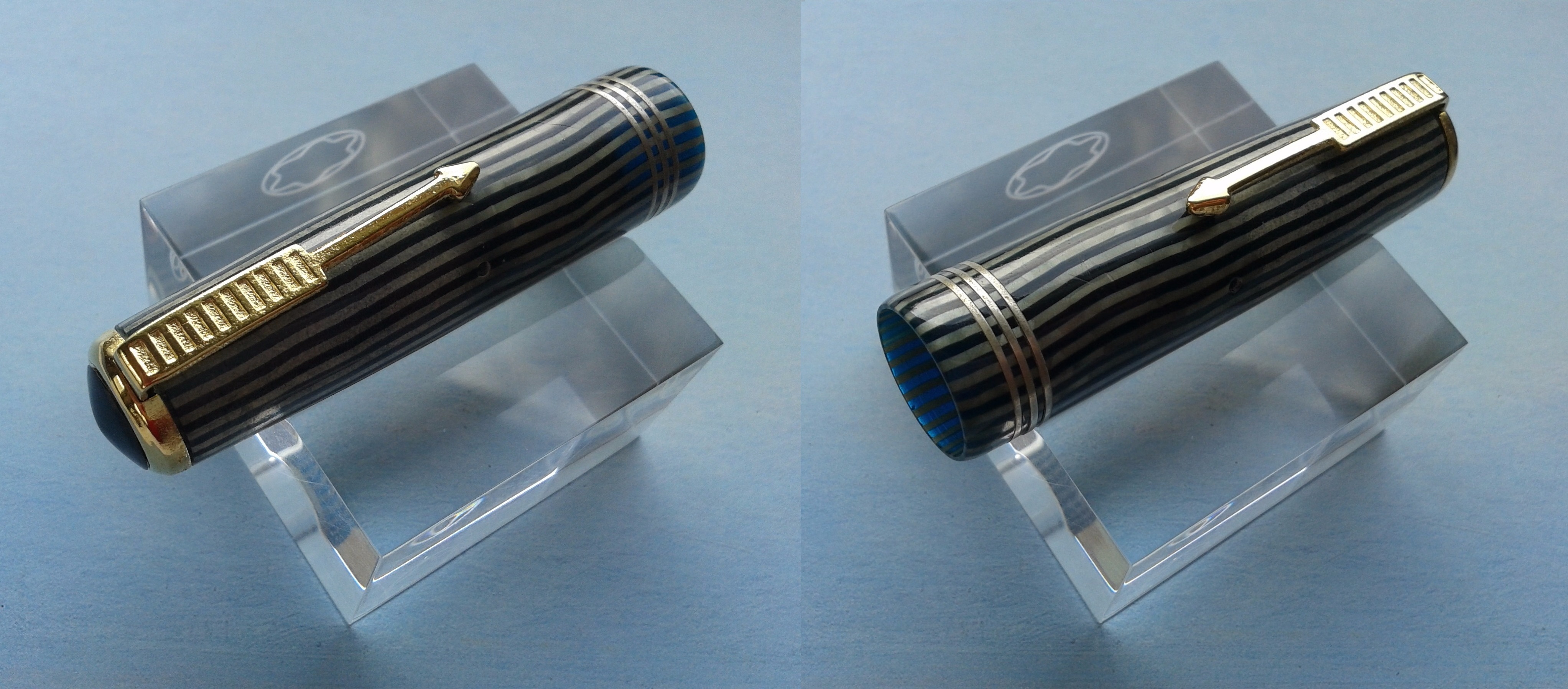raffinata variazione di sfumature nelle righe del fusto e del cappuccio, che tu sei riuscito a cogliere eccezionalmente bene nella foto postata. Se la penna è bellissima ed elegante, la tua presentazione ( come di consueto) la racconta in modo meraviglioso. Grazie Giorgio