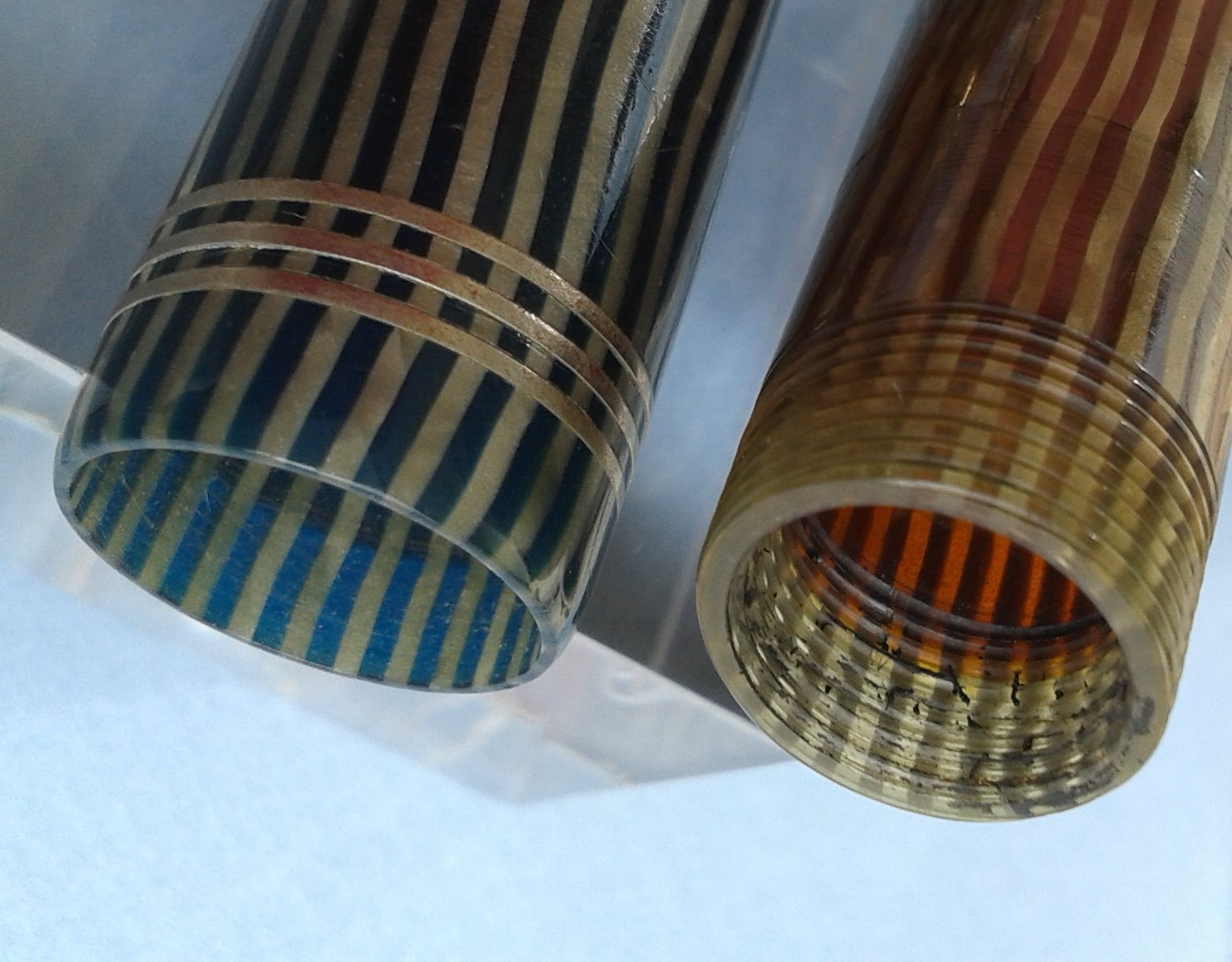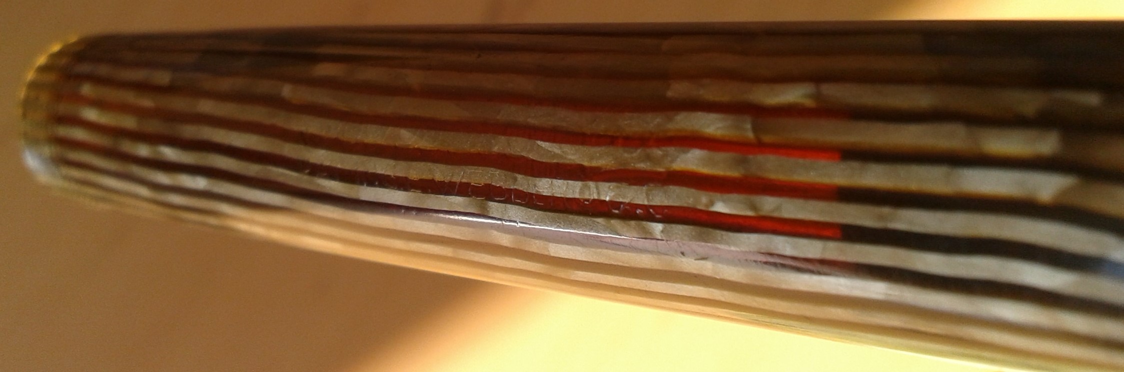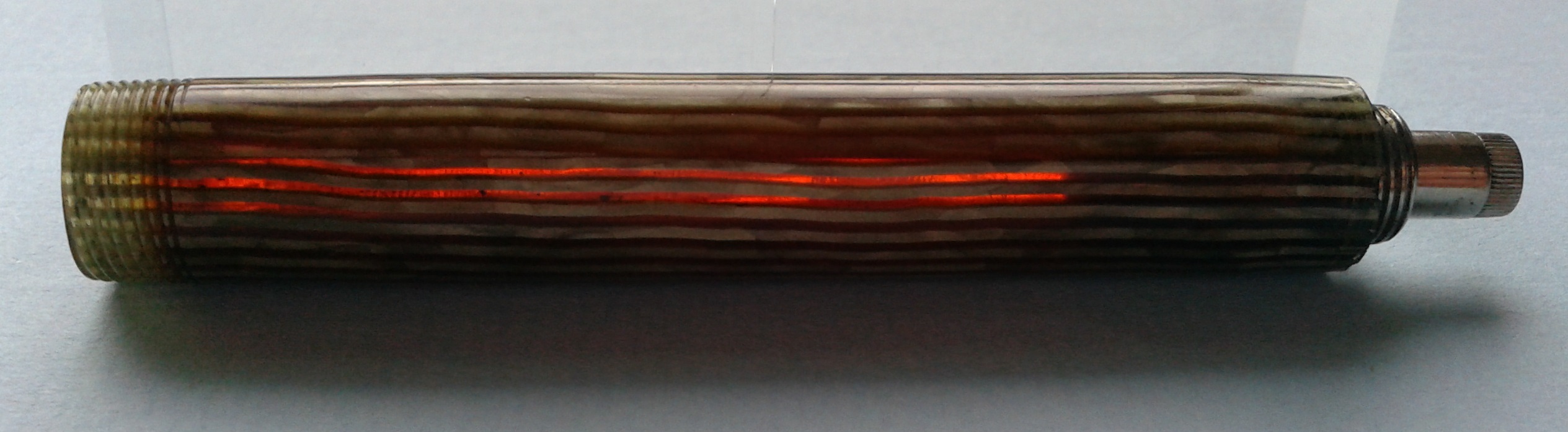 I commentatori non accennano al fatto che la bellissima celluloide impiegata per la costruzione della penna è in realtà di due tipi e di due colori differenti: