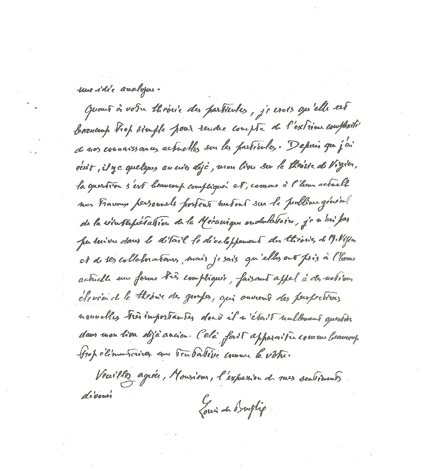 Se vi interessa, se non sono fuori tema e se mi spiegate come aggiungere un pdf alla mail, vorrei inviarvi una lettera autografa del grande Louis de Broglie. La curiosità è che uno dei più grandi fisici moderni, in un periodo di stilografiche e biro trionfanti, scriveva le lettere ... con la cannuccia