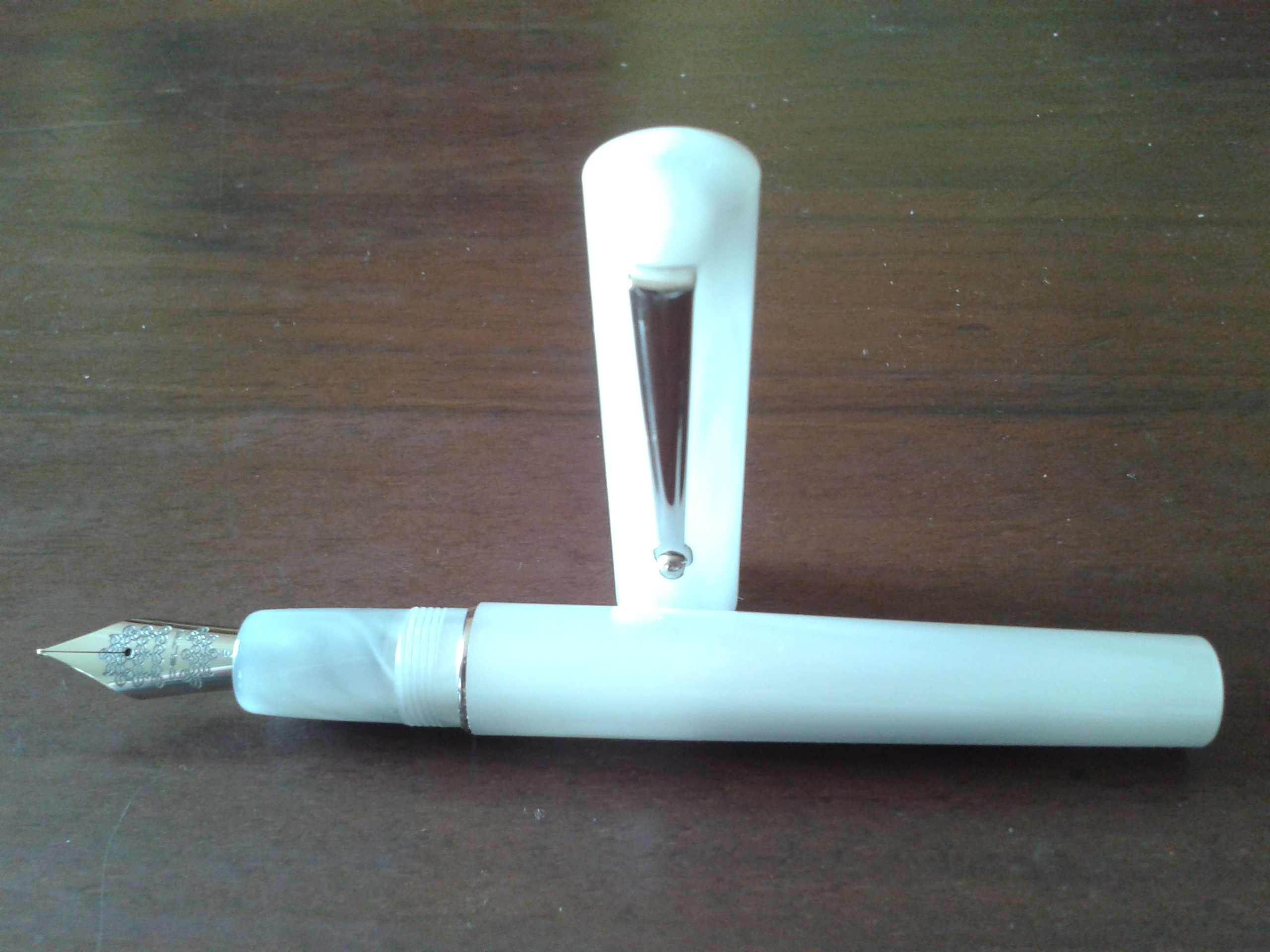 Certo che in una penna bianca la "galalite" ci sta proprio bene. Non riesco a immaginare materiale piu' consono