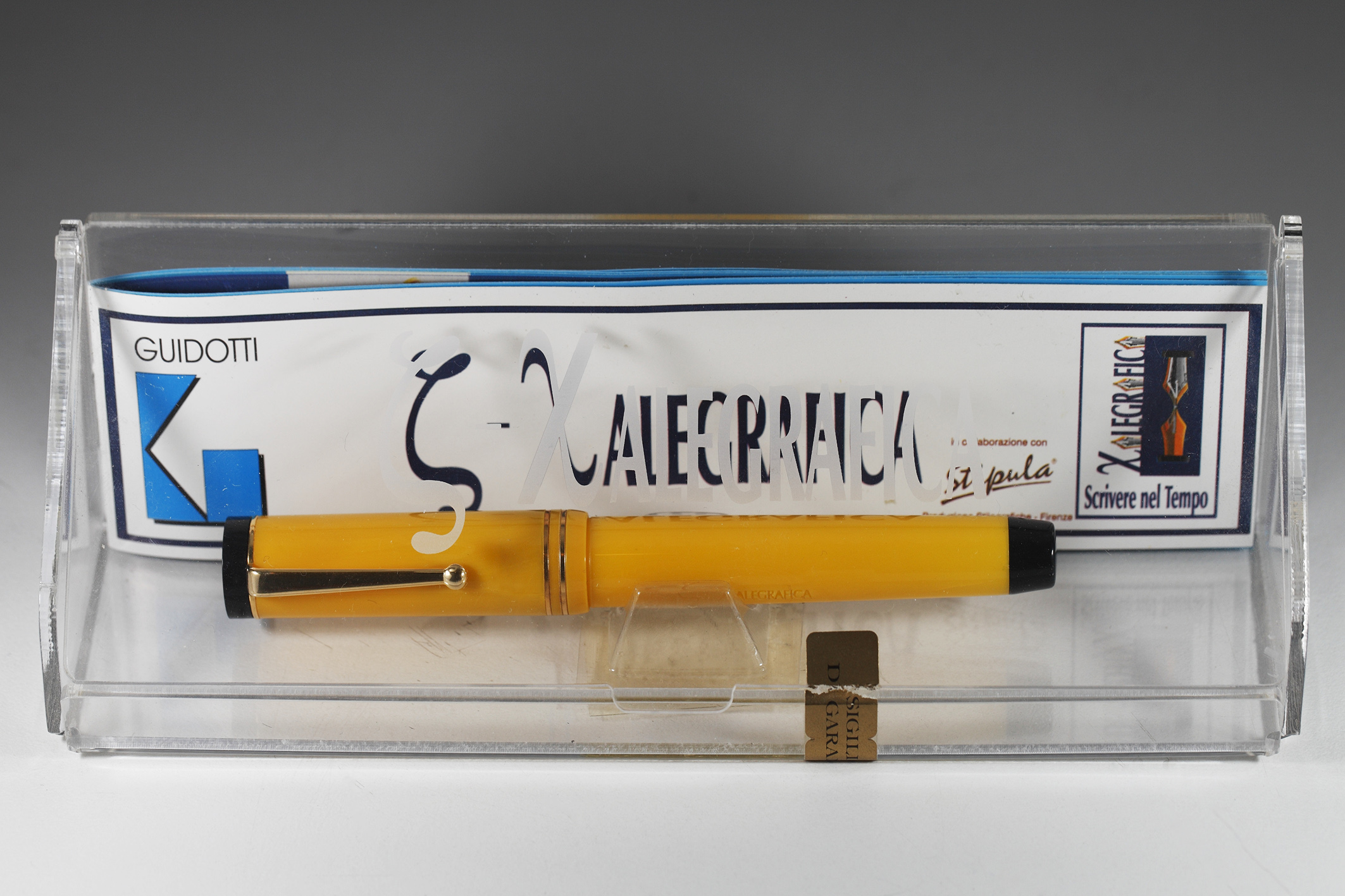Confermo quanto detto a proposito della serie Xalegrafica dato che le ho tutte in quanto medico di famiglia. Aggiungo solo che si ispiravano a penne del passato e per quanto 'povere' erano confezionate in un bell'astuccio di plexiglass, allego a mo' d'esempio foto della 'duofold' gialla. Saluti