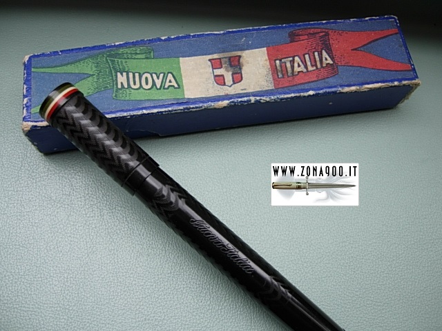 Nota sul pennino, e credo solo il GM potrà fare luce: la penna non monta un pennino marcato "Nuova Italia", probabilmente sostituito, su quello montato anche se molto consumato mi pare di leggere "RAPID" sormontato da una specie di aquila ad ali spiegate.