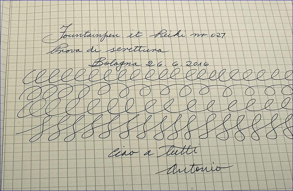 Finalmente ho caricato la penna e fatto le prime prove di scrittura con la mia Reiki 027 pennino F.