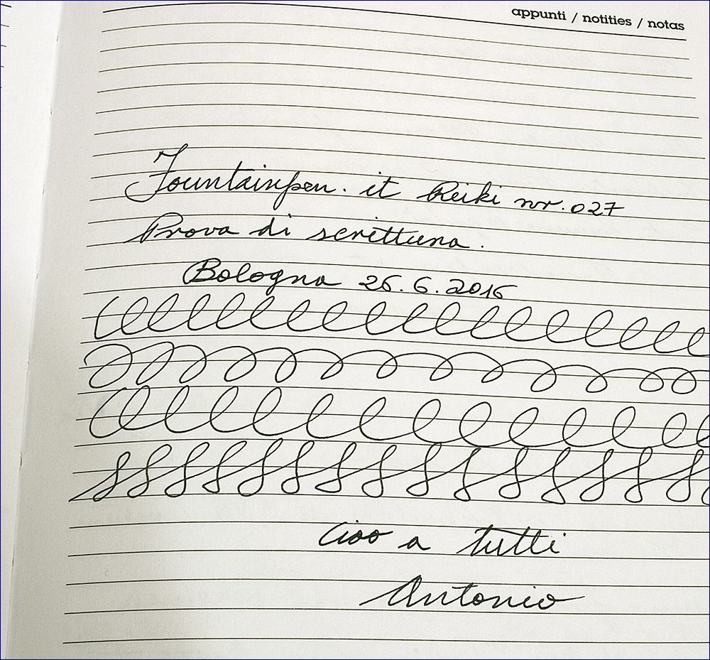 Il risultato è stato sorprendente, la penna ha scritto bene, con un tratto uniforme, senza salti, e con una buona scorrevolezza, insomma la Reiki ha domato la cartaccia più nemica della stilografica che mi sia mai capitata tra le mani.